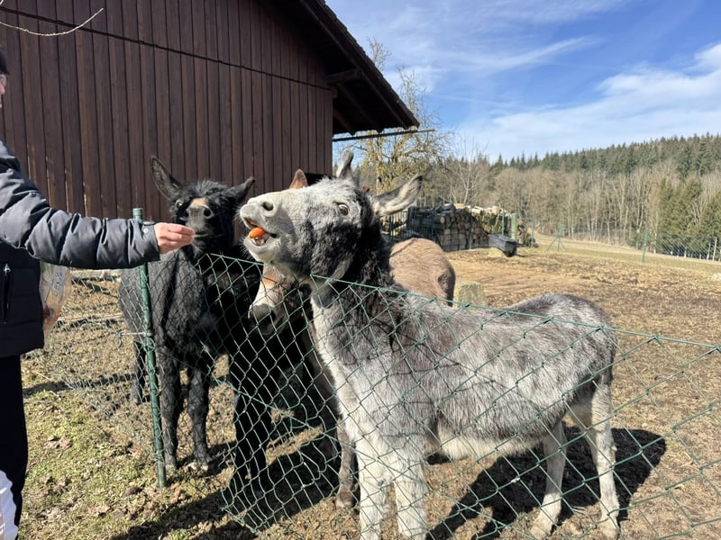 *Advertisement: 4 loving donkeys for sale - ideal for leisure time or as loyal companions**. Are you looking for a new family member or a sociable friend for your farm? Then you've come to the right place! We are offering our four donkeys for sale - either as a group or individually. **Details about our donkeys:** - **Age:** [11, 17,1,2] - **Possible uses:** Ideal for hikes, as companion animals or simply for cuddling. The donkeys are lovingly reared and have a friendly temperament. They are used to living in a herd and are good company for other animals and people. If you are interested or require further information, please do not hesitate to contact us by phone. We look forward to hearing from you and are always available to answer any questions! Give these wonderful animals a new home! ❤️