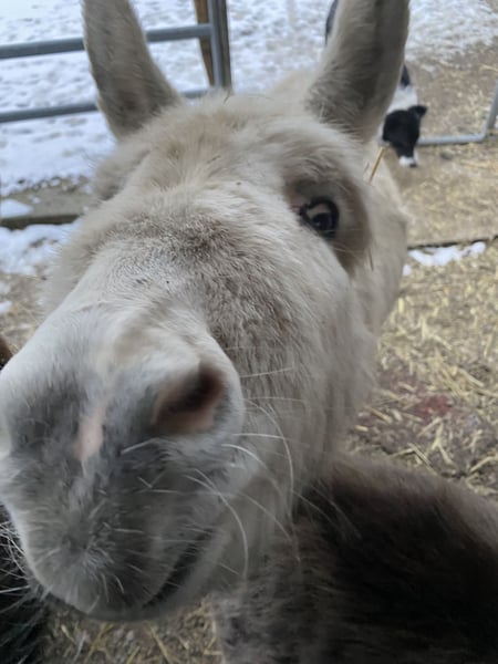 Our Mary-Lou is a very gentle mare. Completely white. Initially a bit shy.