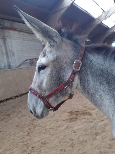 This lovely donkey mare is sociable and gentle. Based on her behavior, we could imagine that she may also be suitable for therapy work. She walks calmly on a halter through the woods, enjoys grooming, and allows her hooves to be picked out without any issues. You are welcome to visit and get to know Hannelore without obligation. By appointment, you can also visit Hannelore without obligation. For this appointment, we charge €40, which can be paid via PayPal or bank transfer at the time of booking. If you make a binding purchase commitment on the day of the visit, we will deduct €100 from the purchase price. Of course, the buyer can have a pre-purchase veterinary examination (AKU) carried out before the handover.