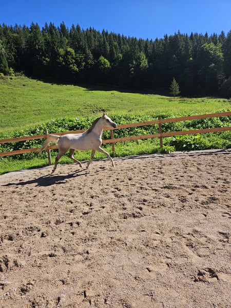Oferujemy obiecującego ogiera arabskiego na sprzedaż, urodzonego w 2023 roku. Z końcowym wzrostem około 160 cm. Jest dobrze zsocjalizowany i ma zrównoważony charakter, co czyni go przyjemnym partnerem. Po więcej informacji prosimy dzwonić lub pisać na WhatsApp 0043 664 189 88 75.