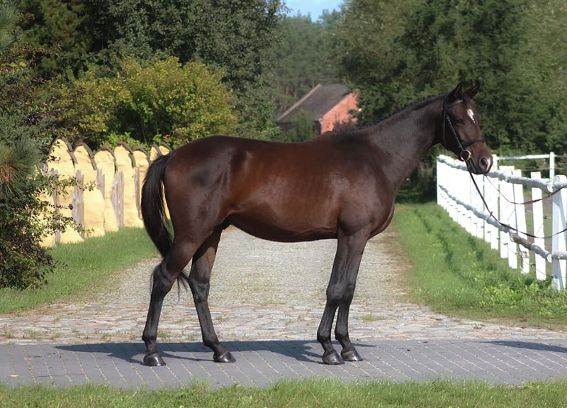 For sale: 3-year-old beautiful gelding by Emark - an amazing black dressage Polish stallion, competing at a high level (last picture). Also, many more top Anglo-Arabian horses in the pedigree, suitable for dressage, eventing, or endurance. Grandsire: The Anglo-Arab stallion All That Jazz was imported to Biddesden from Victoria in Australia as a colt. His sire is the Arabian stallion SS City Lights, who was bred in the USA and stands nearly 16 hands. His dam is Belingo, an Australian Thoroughbred by Saulingo. Jazz was always a tall colt with great scope to his stride. He has the softest and springiest of canters, as all who have been lucky enough to ride him will attest. He was taken through the ranks to advanced level in British Eventing by William Fox-Pitt and went hunting for a season with the South and West Wilts. His foals have been successful in the show ring and have made a promising start in eventing, with their big strides and elegant, steady head positions. Also, Australian Arabian and Thoroughbred horses are well-known and appreciated for their hardness and durability and have achieved many successes in international endurance! Empire AA is of exceptional beauty and charisma, long-legged and well-built, with elastic and extensive movement. Long neck, beautiful subtle head. Very good topline. He is now 166 cm high at 3 years old, with a final estimated height of about 168/169 cm. Lovely chocolate color! Born and raised on large meadows, pastured every day with a group of youngsters. Candidate for dressage, eventing, or endurance sport (nearly 50% Arabian blood) for a tall rider! His dam is an endurance horse in Estonia, and his granddam was exported to Dubai, competing in 120 km races. The price will increase with the level of training. Full papers, e-pass, vaccinated, dewormed, etc. Located in western Poland near the PL/D border. Transport can be arranged. Contact via WhatsApp +48 513 179 245.