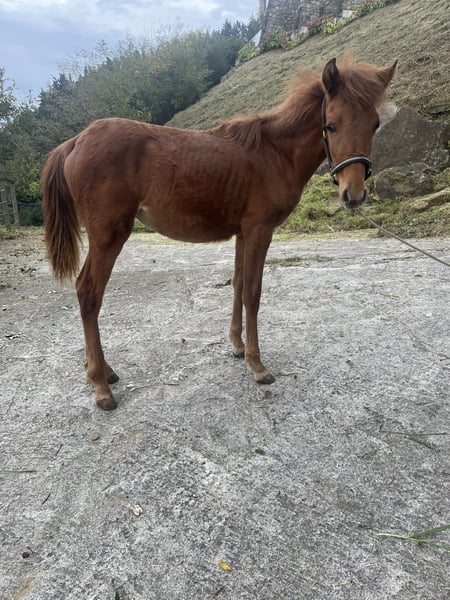 Filly born in April Arabian mare Arabian-Pottoka crossbred stallion sire