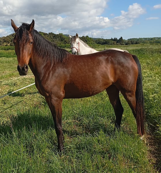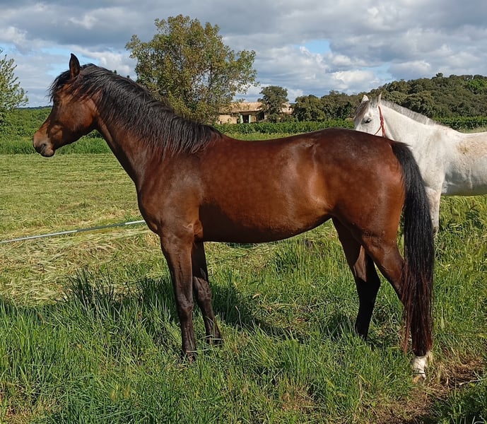 Jolie jument Anglo-Arabe, bai brune 1m63 au garrot. Une beauté rare , très proche de l'homme ,bon caractère. Elle est débourrée aux trois allures, elle sort en extérieur seule ou accompagnée. En 2025 elle s'est qualifié au SHF 3 fois au 20km. Elle est initié également à la barre. C'est une jument avec beaucoup de qualités physiques ,qui peut convenir à toutes les disciplines.