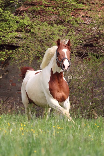 erne Camar de Fleur kennen, eine bildschöne 7-jährige Scheckstute, die zwar nicht mehr im Springsport eingesetzt werden kann, aber dennoch durch ihren Charme und ihre Vielseitigkeit begeistert. Sie befindet sich derzeit in der Ausbildung und entwickelt sich zu einem wunderbaren Freizeitpartner. ✨ Einzigartige Merkmale: - Sanftes und ausgeglichenes Temperament, ideal für entspannte Ausritte und Freizeitreiten. - Sie zeigt großes Potenzial in der Bodenarbeit und genießt es, mit ihrem Menschen neue Kommunikationen und Bindungen aufzubauen. Im Umgang: Camar de Fleur ist ein wahrer Schatz, der die Zuwendung liebt. Sie schätzt gemütliche Ausritte und ist im Gelände zuverlässig und freundlich. Dein Vorteil: Mit Camar de Fleur bekommst du eine loyale und liebevolle Begleiterin, die dich außerhalb des Springplatzes treu zur Seite stehen wird. Interessiert? Melde dich gerne, um mehr über diese charmante Stute zu erfahren oder einen Besuchstermin zu vereinbaren! Telefonische Anfragen sind willkommen.