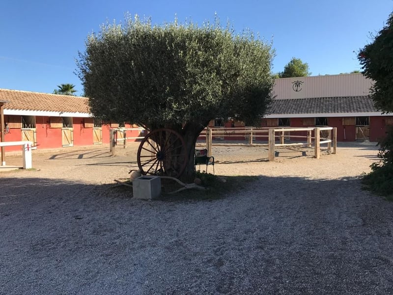Ce centre équestre exclusif, construit en 2012, se trouve dans la commune de Buñol, dans la province de Valence (Espagne). Avec 343 heures d'ensoleillement par mois, Valence est l'une des communes les plus ensoleillées d'Europe ! Actuellement, le site abrite une ferme d'élevage, une école d'équitation et une écurie de pension. L'ensemble des installations a une superficie de 15.000 mètres carrés et comprend - un parking - 1 round-pen - un grand manège de 15mx50m - un grand manège de 25mx50m - un salon d'équitation (60m2) avec 2 salles de bain, une salle à manger avec poêle à bois et une véranda de 50m2 avec barbecue. Dans la partie supérieure du bâtiment se trouve une terrasse de 60m2. - grande sellerie avec surveillance vidéo ainsi qu'un système d'alarme (relié à une entreprise de sécurité) - 22 boxes (3mx3m chacun) avec abreuvoirs automatiques. - 2 pièces pour le stockage du fourrage et du matériel de nettoyage, dont une avec un silo d'une capacité de 8000kg. - douches pour les chevaux - clôtures ouvertes de 260m2 - espace couvert de 40m2 pour les poulinières sur 1800 mètres de terrain (clôturé) - espace jardin et piscine d'une capacité de 70000 litres : - plusieurs paddocks - 9000m2 de surface non construite De plus, un fossé d'irrigation traverse la propriété, ce qui permet de l'utiliser à la fois comme abreuvoir pour les animaux et pour l'irrigation. L'ensemble du domaine dispose d'un trottoir pavé, qui est couvert. La finca est autosuffisante en électricité grâce à une installation solaire, mais peut être alimentée sans problème par le réseau électrique local. Sur les 1500 mètres carrés qui pourraient être légalement construits, il reste encore 800m2 libres qui pourraient être utilisés pour d'autres boxes, entrepôts, appartements. Les chemins sont plantés et irrigués au goutte-à-goutte. Le site se trouve à seulement 5 minutes de l'autoroute A3 Madrid-Valence et à 20 minutes de Valence. Buñol est une ville avec tous les services : Centre de santé, gare RENFE, écoles, magasins, etc. L'établissement dispose d'une licence attribuée pour la détention de 45 chevaux et est reconnu en tant que club équestre par la Real Federación Hípica de la Comunidad Valenciana. APRÈS ACCORD, IL EST POSSIBLE D'ACHETER UNE MAISON D'HABITATION (NOUVELLEMENT CONSTRUITE) ! Nous parlons allemand, anglais et espagnol !