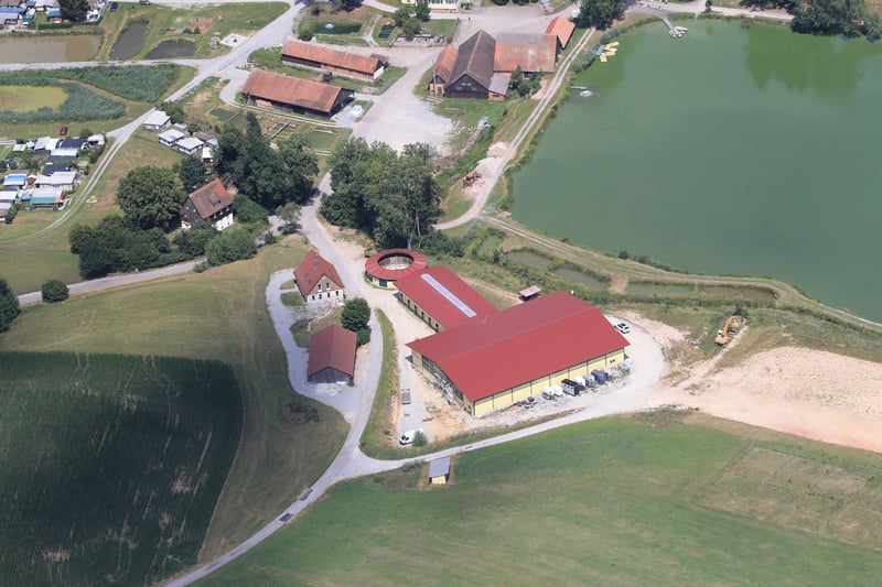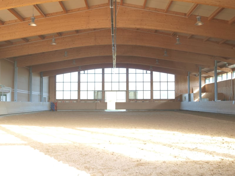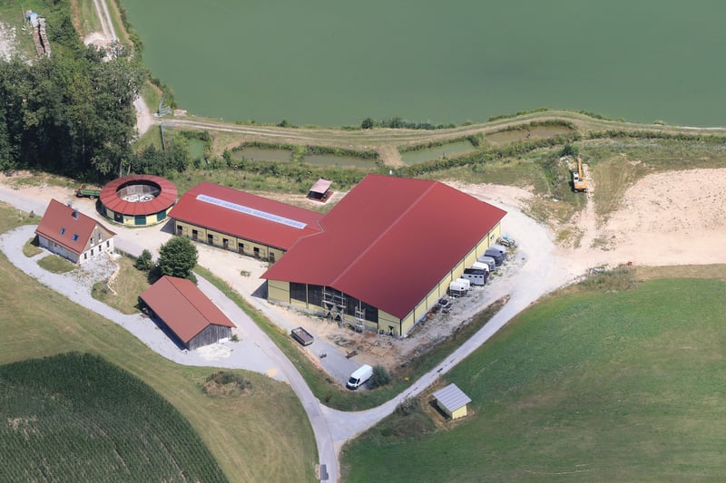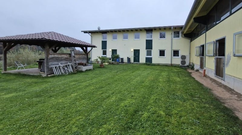 Modern Facility with Riding Arena, 15 Stalls & Residential House Property Description This exceptional equestrian facility, situated in a secluded location by Hammerschmied Lake in Abtsgmünd, combines contemporary architecture, thoughtful functionality, and high-quality equipment in an impressive manner. Built in 2014, the property presents itself in nearly new condition and was designed with a focus on optimal workflows, animal welfare, and energy efficiency. Short distances, clear structures, and high-quality construction make this estate highly attractive for both ambitious private owners and professional riding operations. The spacious total plot of approximately 46,000 m² offers ideal conditions for species-appropriate horsekeeping in a natural environment. Highlights at a Glance - Equestrian facility close to the lake - Total area approx. 46,000 m² - 15 spacious horse stalls (each approx. 13 m²) - Approved paddocks for all stalls - Riding hall: 20 x 40 m with sprinkler system - Outdoor riding arena: 40 x 80 m (approved) - Lunge ring directly at the stable aisle - Residential house approx. 80 m² - Built in 2014 – in excellent condition - Air/water heat pump & underfloor heating - High-quality LED lighting in all areas Detailed Equipment 🐎 Horse Area The stables offer optimal conditions for horses and riders: - 15 bright, spacious stalls with direct access to approved paddocks - Functionally designed stable aisle with short walking distances - Large wash area with hot and cold water connection - Solarium for optimal horse care - High-quality tack room with underfloor heating - Practical hay storage The modern riding hall (20 x 40 m) is equipped with a professional sprinkler system and features full-surface LED lighting, providing ideal training conditions year-round. The generous outdoor arena (40 x 80 m) complements the facilities perfectly. 🏡 Living Area The integrated residential space impresses with modern amenities and high living comfort: - Approx. 80 m² living space - Underfloor heating throughout all rooms - Efficient air/water heat pump - High-quality fitted kitchen - Modern bathroom with shower - Guest WC - Bright, friendly rooms with lake view Area Overview - Total area: approx. 46,000 m² - Courtyard: approx. 3,200 m² - Pasture/arable land: approx. 45,000 m² Location The equestrian estate is located in a breathtaking setting directly on Hammerschmied Lake near Abtsgmünd. The surroundings offer an ideal combination of: - Absolute tranquility and nature - Good accessibility to nearby towns - Complete infrastructure within approximately 15 minutes: schools, shopping facilities, medical services, and all daily needs are easily reachable. Additional Information - Purchase price: €1,500,000 - Handover: by arrangement - Viewings only upon presentation of a creditworthiness proof Conclusion A rare opportunity to acquire a high-quality, modern equestrian estate in a unique location. Perfectly suited for discerning horse lovers, breeders, or professional riding businesses.