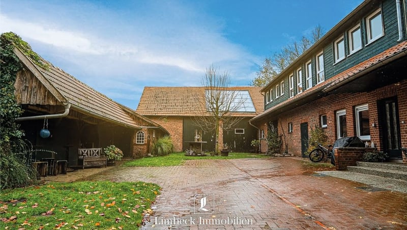 Dwie jednostki mieszkalne z potencjałem na hodowlę koni i hobby rolnicze Na sprzedaż wolnostojący dom mieszkalny w Bippen, składający się z dwóch mieszkań, dużej działki oraz kilku stajni. Przyległe tereny zielone mogą być optymalnie wykorzystane do hodowli zwierząt lub celów rolniczych. Powierzchnia zabudowana: około 3 200 m² Teren zielony: około 4 800 m² Dom mieszkalny: około 280 m² (2 mieszkania) Stajnie, stodoła, remiza Panele słoneczne do podgrzewania wody użytkowej Kraj związkowy: Dolna Saksonia Powiat: Osnabrück Gmina: Bippen Numer obiektu: 29289