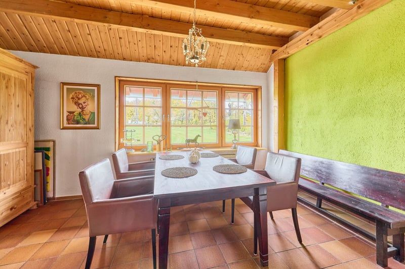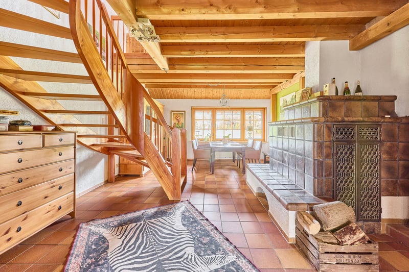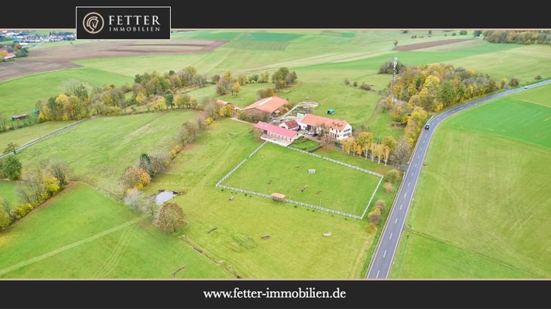 Equestrian Facility in Secluded Location with Space for Currently 32 Horses & Over 8 Hectares of Own Land! Property Description: This riding estate is situated in a quiet, private setting within a district of Birstein, combining functional infrastructure with a cozy, rural living atmosphere. The property spans approximately 83,879 m² of owned land, with an additional 17,500 m² of co-ownership and further leased areas. The country house offers about 350 m² of living space, divided into three residential units, including a small staff apartment. The two larger units can be combined into a single residence via an internal door but are also separable if desired. The building has been regularly modernized, with bathrooms and kitchens renovated in 2020. It is equipped with an air/water heat pump and an oil heating system, as well as underfloor heating and cozy tiled stoves. A large garden featuring a new outdoor pool adds to the exclusivity. The riding hall, built in 2004, provides an optimal training environment with a 20 x 40-meter riding arena and a sand/textile surface. Its timber-frame construction, large windows, and adjoining rider’s lounge create a bright, functional, and pleasant working atmosphere. Additionally, there is a large, drained grass riding arena, a lunging circle (Ø 18 m), and a horse-walking machine for four horses. The stables, constructed or renovated in 1970, 1990, and 2020, accommodate up to 32 horses, distributed across paddock boxes, indoor boxes, and open stalls. A large, fully enclosed barn from 1958 with 350 m² provides ample storage space for approximately 300 round bales. Extensive pastures and paddocks border directly to the stables, enabling species-appropriate keeping with plenty of movement. For daily operations, there is an approved manure platform, sufficient parking for cars, and a trailer parking area. The charm of the country house, generous grounds, and peaceful seclusion make this estate a place where one feels at home both in everyday life and in equestrian pursuits. Features: Main House: - Built: 1958, expanded in 1991 and 2004 - Living area: approx. 350 m², 3 residential units - Heating: Oil (2010), underfloor heating, tiled stove, air/water heat pump in the “Old House” - Construction: Solid masonry - Modernizations: Bathrooms and kitchens in 2020 - Windows: PVC/Wood, double-glazed, sash windows (from 1985, 1991, 2004) - Insulation: Roof and intermediate floors - Large private garden - Exterior pool (6.5 x 3.8 m) from 2021, heated via heat pump Riding Hall: - Built: 2004 - Arena: 20 x 40 meters - Surface: Sand/textile mixture - Construction: Timber-frame - Rider’s lounge with view into the arena Dressage Arena: - Built: 2005 - Dimensions: 70 x 110 meters - Surface: Drained grass - Fencing present Horse Accommodation: - Built: 1970, 1990, and 2020 - Watering: Frost-free ball troughs in the open stalls, Suevia circulation system in paddock boxes - Sizes: Between 3 x 3 and 3 x 4 meters - Multiple saddle rooms available Total capacity for up to 32 horses: - 10 Paddock boxes - 4 indoor boxes without paddock - 8 open stalls for 18 horses/ponies Horse-Walking Machine: - Capacity: 4 horses - Built: 2020 - Surface: Rubber bones Barn: - Built: 1958 - 350 m² gross floor area (fully enclosed) - Storage for approx. 300 round bales - Floor: Concrete Lunging Circle: - Built: 2010 - Surface: Sand/textile mixture, drained - Diameter: 18 meters - Fencing available Additional Features: - Approved manure platform - Trailer parking and car parking spaces - Approved application for a 24 kW photovoltaic system with the Kreiswerke MKK Location: The riding estate is located in a district of the municipality of Birstein in the Hessian Main-Kinzig district. Quick access via federal roads B276 and B457 leads toward Gedern, Gelnhausen, and Büdingen. From there, the A66 (Frankfurt–Fulda) and A45 (Hanau–Gießen) motorways are easily reachable. The Wächtersbach and Gelnhausen train stations connect to regional and long-distance services with direct links to Frankfurt am Main, Hanau, and Fulda. Frankfurt Airport (FRA) is approximately 60–70 minutes away by car, with Frankfurt-Hahn Airport reachable in about 90 minutes. The community offers a high quality of life in a natural setting. The district is part of the family-friendly municipality of Birstein, known for its active clubs, good basic services, and idyllic location within the Vogelsberg Nature Park. Numerous associations in the village and surrounding areas provide a diverse range of leisure and community activities—from riding and sports clubs to fire brigade and cultural initiatives. Daily necessities are available in Birstein and neighboring towns, including supermarkets, bakeries, butchers, banks, and restaurants. A larger retail and supermarket location is in nearby Wächtersbach, just a few minutes’ drive away. Educational facilities include a primary school and a comprehensive school with a gymnasium branch. Secondary and vocational schools are accessible in Wächtersbach, Gelnhausen, or Büdingen. Medical care is secured with general practitioners, dentists, and a pharmacy in Birstein, with specialists and Gelnhausen Hospital reachable within about 25 minutes. The combination of peaceful surroundings, a strong village community, and excellent connectivity makes this area an attractive place to live—ideal for families, nature lovers, and those seeking rural life with solid infrastructure. Energy Certificate: Main energy source: Heating oil, air/water heat pump Demand Certificate End energy consumption: 168.91 kWh/(m²*a) Energy efficiency class: F Construction year according to energy certificate: 1991 Additional Information: Unauthorized access to the riding estate outside of scheduled viewings with the authorized broker Fetter Immobilien is prohibited by the owners. A commission of 3.57% of the purchase price including VAT is payable upon notarization and is due upon signing the notariz