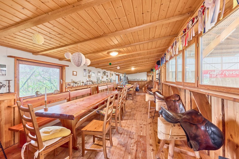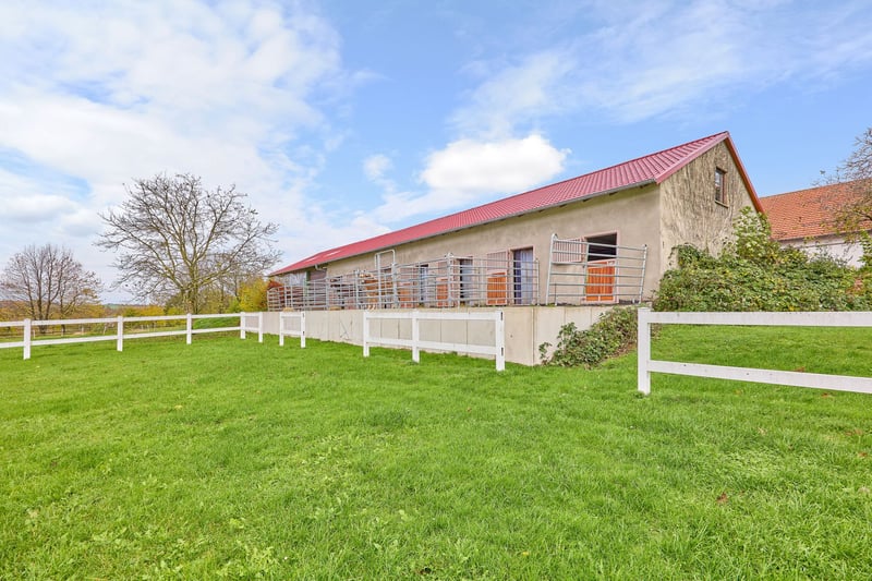 Bitte füllen Sie das nachfolgende Kontaktformular vollständig aus bevor Sie uns telefonisch kontaktieren. Vielen Dank für Ihr Verständnis! Reitanlage in Hessen zu verkaufen – absolute Alleinlage nur eine Stunde Fahrtzeit von Frankfurt am Main entfernt! Objektbeschreibung: Diese Reitanlage in Hessen liegt in einem Ortsteil von Birstein im Main-Kinzig-Kreis und besticht vor allem durch die exponierte Lage und die Kombination aus großzügigem Wohnkomfort und Trainingsbedingungen für den ambitionierten Reitsport. Das Anwesen erstreckt sich über ein Grundstück von ca. 83.879 m² im Alleineigentum, zusätzlich können ca. 17.500 m² gekauft oder auch nur gepachtet werden und weitere 25 ha Pachtfläche könnten ebenso langfristig übernommen werden. So wird eine wirtschaftliche Aufstellung des Betriebs ermöglicht. Das Landhaus verfügt über eine Wohnfläche von ca. 350 m², verteilt auf drei Wohneinheiten, darunter eine kleine Personalwohnung und zwei große Wohnungen. Die beiden großen Wohneinheiten lassen sich durch eine Verbindungstür problemlos zu einer Einheit zusammenfassen, sind jedoch bei Bedarf auch weiter trennbar. Das Gebäude wurde regelmäßig modernisiert, die Bäder und Küchen 2020 erneuert. Ausgestattet ist das Haus mit einer Luft-/Wärmepumpe und einer Ölheizung, sowie Fußbodenheizung und gemütlichen Kachelöfen. Ein großer Garten mit einem neuwertigen Außenpool aus 2021 sorgen für eine gewisse Exklusivität. Die Reithalle aus dem Jahr 2004 bietet mit 20 × 40 Metern Reitfläche und einem Sand-/Textilboden optimale Trainingsbedingungen. Die Leimbinderkonstruktion, großzügige Lichtbänder und ein angrenzendes Reiterstübchen sorgen für eine helle, funktionale und angenehme Reitatmosphäre. Ergänzend steht ein großer, drainierter Gras-Reitplatz, ein Longierzirkel (Ø 18 m) und eine Führmaschine für vier Pferde zur Verfügung. Die Stallungen wurden in den Jahren 1970, 1990 und 2020 errichtet bzw. modernisiert und bieten Platz für bis zu 32 Pferde, verteilt auf Paddockboxen, Innenboxen und Offenstallplätze. Sattelkammern und Putzplätze sind ebenso vorhanden. Eine große, geschlossene Bergehalle aus 1958 mit 350 m² bietet ausreichend Platz für Lagerung von rund 300 Rundballen. Die weitläufigen Weiden und Koppeln grenzen direkt an die Stallungen an und ermöglichen eine artgerechte Haltung mit viel Bewegung. Mehrere Offenställe auf den Weiden bieten ideale Voraussetzungen für die Zucht. Für den täglichen Ablauf stehen zudem eine genehmigte Mistplatte, ausreichend PKW-Stellplätze sowie ein Anhängerparkplatz zur Verfügung. Der Charme des Landhauses, die großzügigen Flächen und die ruhige Alleinlage machen dieses Anwesen zu einem Ort, an dem man sich sowohl im Alltag als auch im Reitsport sofort zuhause fühlt. Ausstattung: Wohnhaus: - Baujahr: 1958 Ursprung, An- und Ausbau in 1991, 2004 - Wohnfläche: ca. 350 m², 3 Wohneinheiten - Heizung: Öl aus 2010, Fußbodenheizung, Kachelofen, Luft-/Wärmepumpe im “Althaus” - Bauweise: Massivbauweise - Modernisierungen: Bäder und Küchen im Jahr 2020 - Fenster: Kunststoff-/ Holz, Doppel-Verglasung, Sprossenfenster (Bj.1985, 1991, 2004) - Dämmung: Dach und Zwischendecken - Großer privater Garten am Haus - Außen-Pool mit den Maßen 6,5 x 3,8 aus dem Jahr 2021 (beheizbar per Wärmepumpe) Reithalle: - Baujahr: 2004 - Reitfläche: 20 x 40 Meter - Boden: Sand-/Textilgemisch - Konstruktion: Leimbinder - Reiterstübchen mit Blick in die Reithalle Reitplatz (Vielseitigkeit): - Baujahr 2005 - Maße: 70 x 110 Meter - Boden: Gras, drainiert - Einzäunung vorhanden Unterbringung der Pferde: - Baujahr der Stallgebäude 1970, 1990 und 2020 - Tränken: Frostfreie Balltränken Offenstall, Suevia Umlauf in den Padockboxen - Maße: zwischen 3 x 3 und 3 x 4 Meter - Mehrere Sattelkammern vorhanden Insgesamt können untergebracht werden: 32 Pferde - 10 Paddockboxen - 4 Boxen ohne Paddock - 8 Laufställe für insgesamt 18 Pferde / Ponies Führmaschine: - Platz für 4 Pferde - Baujahr: 2020 - Boden: Gummiknochensteine Bergehalle: - Baujahr: 1958 - 350 m² Bruttogrundfläche (vollständig geschlossen) - Lagerung von rund 300 Rundballen - Boden: Beton Longierzirkel: - Baujahr: 2010 - Boden: Sand-/Textilgemisch, drainiert - Durchmesser 18 Meter - Einzäunung vorhanden Weiteres: - Ein Antrag an die Kreiswerke MKK ist bereits genehmigt für PV Anlage mit 24 kW - Genehmigte Mistplatte - Anhängerparkplatz, PKW Stellplätze Lage: Die Reitanlage befindet sich in einem Ortsteil der Gemeinde Birstein im hessischen Main-Kinzig-Kreis. Über die Bundesstraße B276 und die B457 besteht eine schnelle Anbindung in Richtung Gedern, Gelnhausen und Büdingen. Von dort aus sind die Autobahnen A66 (Frankfurt–Fulda) und A45 (Hanau–Gießen) in kurzer Zeit erreichbar. Die Bahnhöfe in Wächtersbach und Gelnhausen bieten Anschluss an den Regional- und Fernverkehr mit direkter Verbindung nach Frankfurt am Main, Hanau und Fulda. Der internationale Flughafen Frankfurt (FRA) ist mit dem Auto in etwa 60–70 Minuten erreichbar, ebenso der Flughafen Frankfurt-Hahn in rund 90 Minuten. Die Gemeinde bietet eine hohe Lebensqualität in naturnaher Umgebung. Der Ortsteil ist Teil der familienfreundlichen Gemeinde Birstein, die für ihr reges Vereinsleben, eine gute Grundversorgung und ihre idyllische Lage im Naturpark Vogelsberg bekannt ist. Im Ort selbst und in den umliegenden Ortsteilen finden sich zahlreiche Vereine, die ein vielfältiges Freizeit- und Gemeinschaftsangebot schaffen – von Reit- und Sportvereinen über Feuerwehr- und Musikvereine bis hin zu kulturellen Initiativen. Für den täglichen Bedarf stehen in Birstein und den Nachbargemeinden Einkaufsmöglichkeiten, Bäckereien, Metzgereien, Banken und Gastronomie zur Verfügung. Ein größerer Einzelhandels- und Supermarktstandort befindet sich im nahen Wächtersbach, nur wenige Fahrminuten entfernt. Im Bereich Bildung verfügt Birstein über eine Grundschule sowie eine Gesamtschule mit 