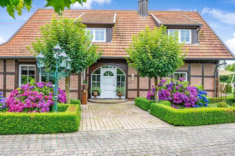 Repräsentatives Anwesen mit vielseitigen Nutzungsmöglichkeiten, exklusivem Wohnkomfort und zwei separaten Waldflächen in Meppen-Teglingen! Die Hofstelle umfasst zwei Wohnhäuser auf einer weitläufigen Fläche von 8.976 m² mit vielfältigen Möglichkeiten für Wohnen, Arbeiten und Tierhaltung. Das ursprüngliche Wohnhaus aus dem Jahr 1956 wurde 1999 durch ein weiteres Wohngebäude ergänzt. Die Verbindung aus klassischer Bauweise und zeitgemäßer Ausstattung schafft flexible Nutzungsspielräume. Neben den Wohnhäusern stehen Wirtschaftsflächen sowie gepflegte Außenanlagen bereit. Die naturnahe Lage bietet einen freien Blick auf die umliegenden Felder und verbindet ruhiges Wohnen mit guter Erreichbarkeit der Kreisstadt Meppen. Eine Photovoltaikanlage aus dem Jahr 2004 ermöglicht durch vollständige Stromeinspeisung zusätzliche Einnahmen. Zum Angebot gehören zudem zwei separate Waldflächen mit zusammen ca. 4.753 m², die unweit der Hofstelle liegen. Aus Hoffläche und Waldgrundstücken ergibt sich eine Gesamtgrundstücksgröße von 13.729 m². Zusätzlich besteht die Möglichkeit, angrenzende landwirtschaftliche Flächen separat zu erwerben. Das 1999 errichtete Wohnhaus bietet eine moderne, großzügige Struktur. Im Erdgeschoss befinden sich ein offenes Foyer mit Garderobenbereich, ein helles Wohn-/Esszimmer mit Kachelofen und Terrassenzugang sowie eine Küche im Landhausstil mit Frühstücksecke (Einbauküche im Kaufpreis enthalten). Ein 2021 stilvoll gestalteter Sommergarten erweitert den Wohnbereich. Ein Gäste-WC vervollständigt diese Ebene. Im Dachgeschoss bietet das Haus ein großes Hauptschlafzimmer mit angrenzender Ankleide, zwei weitere Räume, die als Kinder-, Arbeits- oder Gästezimmer genutzt werden können, sowie ein modernes Tageslichtbad mit zwei Waschtischen, einer ebenerdigen Dusche und Einbauschränken. Der Teilkeller umfasst einen Vorratsraum, einen Fitnessraum sowie den Heizungsraum mit Platz für Waschmaschine und Trockner. Das modernisierte Ursprungshaus aus dem Jahr 1956 verfügt im Erdgeschoss über einen lichtdurchfluteten (Kalt-)Wintergarten, der den Wohnraum mit dem Außenbereich verbindet. Das Wohn- und Esszimmer bietet großzügige Flächen, ergänzt durch ein separates Fernsehzimmer. Die moderne Einbauküche von 2016 ist im Kaufpreis enthalten und wird durch eine zusätzliche Hauswirtschaftsküche mit nostalgischem Ofen erweitert. Die Diele führt zu einem Gäste-WC, einem Schlafzimmer sowie zu einem Tageslichtbad mit Dusche, Eckbadewanne und Waschtisch. Im Obergeschoss stehen drei weitere Zimmer zur Verfügung, die vielseitig nutzbar sind. Der Spitzboden ist über eine Bodeneinschubtreppe zugänglich. Der Teilkeller umfasst einen Vorratsraum sowie den Heizungsraum. Beide Wohnhäuser eröffnen verschiedene Nutzungsmöglichkeiten. Durch die getrennten Wohneinheiten eignet sich das Ensemble besonders für Mehrgenerationennutzung. Das Ursprungshaus mit Schlafzimmer und Bad im Erdgeschoss ermöglicht zudem ein ebenerdiges Wohnkonzept. Auch eine Teilvermietung ist denkbar. Für Pferdehaltung bestehen ideale Bedingungen. Das Wirtschaftsgebäude verfügt über flexibel gestaltbare Pferdeboxen, Lagerflächen für Heu und Stroh, einen Pflegebereich und eine Sattelkammer. Ein eingezäunter Außenreitplatz mit Naturboden sowie angrenzende Weideflächen ergänzen das Angebot.