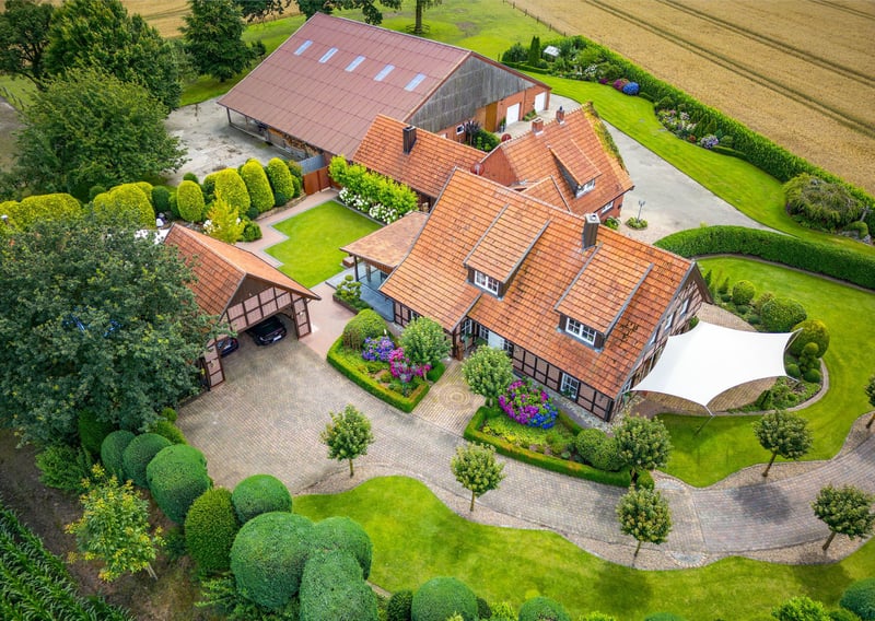 Propiedad representativa con múltiples posibilidades de uso, lujo residencial exclusivo y dos parcelas forestales separadas en Meppen-Teglingen. La finca comprende dos viviendas en una amplia parcela de 8.976 m², con diversas opciones para vivir, trabajar y criar animales. La casa principal, construida en 1956, fue complementada en 1999 con otra vivienda adicional. La combinación de arquitectura clásica y equipamiento moderno crea espacios flexibles para diferentes usos. Además de las viviendas, hay áreas de servicio y jardines bien cuidados. Su ubicación en contacto con la naturaleza ofrece vistas despejadas a los campos circundantes y combina una vida tranquila con buena conexión a la ciudad de Meppen. Un sistema fotovoltaico instalado en 2004 genera ingresos adicionales mediante la inyección completa de energía a la red. También se incluyen dos parcelas forestales separadas de aproximadamente 4.753 m², situadas cerca de la finca. La superficie total del terreno, sumando la zona residencial y las parcelas forestales, alcanza los 13.729 m². Existe la opción de adquirir por separado terrenos agrícolas adyacentes. La casa construida en 1999 presenta una estructura moderna y espaciosa. En la planta baja se encuentra un vestíbulo abierto con área de guardarropa, una sala de estar/comedor luminosa con chimenea de azulejos y acceso a la terraza, y una cocina de estilo rústico con zona de desayuno (la cocina equipada está incluida en el precio). Un elegante invernadero de verano, añadido en 2021, amplía la zona de vivienda. Un aseo para invitados completa esta planta. En el ático, la vivienda dispone de un amplio dormitorio principal con vestidor adyacente, dos habitaciones adicionales que pueden usarse como habitaciones infantiles, de trabajo o de invitados, y un baño moderno con luz natural, doble lavabo, ducha a nivel y armarios empotrados. El semisótano incluye un trastero, una sala de fitness y la sala de calderas, con espacio para lavadora y secadora. La casa original, reformada en 1956, cuenta en la planta baja con un invernadero acristalado que conecta la vivienda con el exterior, aportando luminosidad. La sala de estar y comedor ofrecen amplios espacios, complementados por una sala de televisión separada. La moderna cocina empotrada de 2016 está incluida en el precio y se complementa con una despensa con horno de estilo nostálgico. Desde el vestíbulo se accede a un aseo para invitados, un dormitorio y un baño con ducha, bañera de esquina y lavabo. En la planta superior hay tres habitaciones adicionales, con múltiples posibilidades de uso. El ático se accede mediante una escalera de mano fija. El semisótano incluye un trastero y la sala de calderas. Ambas viviendas ofrecen distintas opciones de uso. Gracias a las unidades separadas, el conjunto es especialmente adecuado para viviendas multigeneracionales. La casa original, con dormitorio y baño en la planta baja, permite una vivienda en planta baja. También es posible alquilar una de las viviendas parcialmente. Para la cría de caballos, las condiciones son ideales. El edificio de servicio cuenta con boxes de caballos configurables, áreas de almacenamiento para heno y paja, un área de cuidado y un vestuario para sillas de montar. Un paddock exterior cercado con superficie natural, junto con praderas adyacentes, completan la oferta.