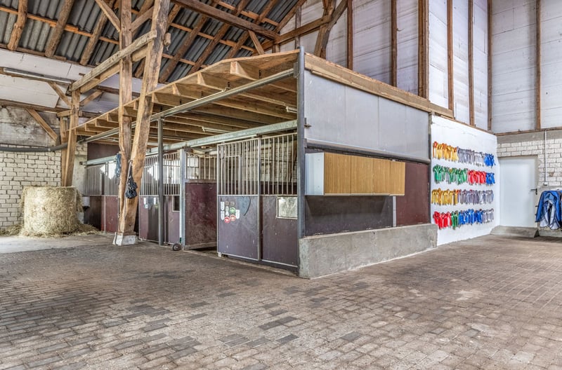This property was built in 1956 and 1999 on a 8,976 sqm plot of land in a quiet, rural outskirts location with unobstructed views in the district of Teglingen, Meppen. The surroundings offer a pleasant mix of natural living and convenient access to everyday amenities. This spacious rural estate includes two residential buildings on a large parcel of land with versatile options for living, working, and keeping animals. The original house from 1956 was expanded in 1999 with an additional residential building. The combination of traditional construction and modern amenities allows for flexible use and creative design options. In addition to the residential buildings, there are extensive utility areas and well-maintained outdoor facilities. The natural setting provides an unobstructed view of the surrounding fields and combines peaceful living with good accessibility to the district town of Meppen. A photovoltaic system installed in 2004 ensures additional income through full feed-in of electricity. The residence built in 1999 features a spacious and modern layout. On the ground floor, there is an open foyer with a wardrobe area, a bright living/dining room with a tile stove and direct access to the terrace, as well as a large country-style kitchen with a breakfast nook (built-in kitchen included in the purchase price). The stylishly designed summer conservatory, added in 2021, extends the living space and provides a sheltered outdoor retreat. A guest WC completes the room layout on this level. The upper floor offers a large master bedroom with an adjoining walk-in closet, two additional rooms that can be used as children's, work, or guest rooms, and a modern daylight bathroom with two washbasins, a walk-in shower, and built-in cabinets. The partial basement includes a storage room, a fitness room, and the heating room with space for a washing machine and dryer. The original house has been modernized and features a bright, glazed winter garden on the ground floor, harmoniously connecting the living area with the outdoor space. The spacious living and dining room provides ample space for social gatherings, while a separate TV room offers additional retreat options. The modern fitted kitchen from 2016 is included in the purchase price. It is complemented by a utility kitchen with a nostalgic oven, offering extra storage and workspace. The hallway leads to a guest WC with a sink and toilet, as well as a bedroom. A daylight bathroom with a shower, corner bathtub, and washbasin completes the room layout on this floor. Upstairs, there are three additional rooms that can be flexibly used as bedrooms, guest rooms, or offices. The attic is accessible via a pull-down ladder. The partial basement contains a storage room and the heating system. Both houses offer various usage concepts. They are suitable for multi-generational living, as they provide separate living units. The original house, with a bedroom and bathroom on the ground floor, also allows for single-story living. Partial rental is also possible to generate additional income. For horse enthusiasts, the estate offers ideal conditions. The utility building has adaptable stables and storage areas for hay, straw, or other equipment. There is also a dedicated area for horse care, a saddle room, and an enclosed outdoor riding arena with natural footing. The adjoining pasture allows for species-appropriate animal husbandry. The surrounding agricultural fields are currently leased, with the possibility of taking over the lease by arrangement.