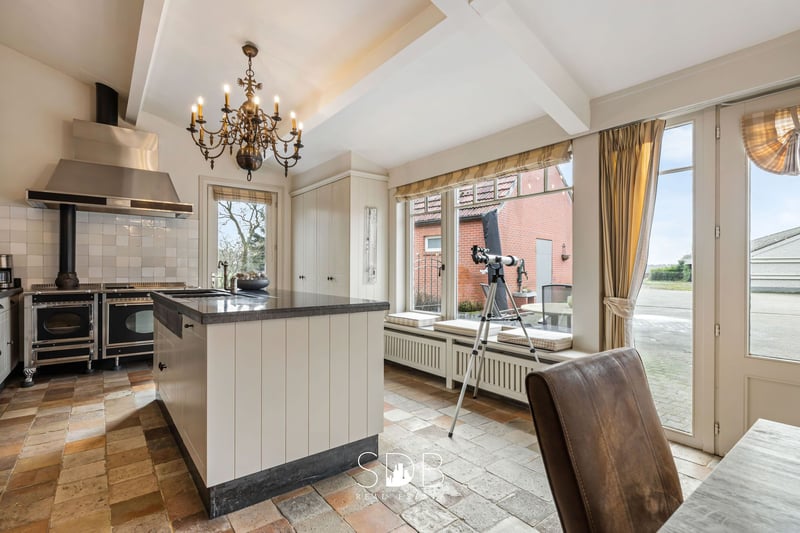 Te Turnhout, in de provincie Antwerpen treffen we deze landelijk gelegen eigendom op circa 9,3 hectare aan. Deze ruime hoeve met authentieke stalgebouwen en landerijen neemt jou mee in de pracht en praal van haar groene omgeving. En diezelfde charme treffen we binnenshuis ook aan. De landelijke woonstijl zet al gauw een trend doorheen de woning. Met een focus op natuurlijke materialen en rustieke elementen. De ruime woonkamer wordt dan ook gecharmeerd omwille van haar eiken balkenplafond, waarbij de openhaard voor sfeer en gezelligheid zorgt. De riante landelijke keuken heeft een tijdloze en gezellige uitstraling. Deze keuken met keukeneiland is voorzien in al haar faciliteiten. De open raampartijen zorgen voor een gezonde portie natuurlijk daglicht. Hierdoor creëer je eveneens een sterke connectie met het gebeuren buitenshuis. Aanpalend tref je een berging aan die voorzien is van de nutsvoorzieningen voor wasmachine en droogkast. Ook heb je hier heel wat opbergmogelijkheden. Op de benedenverdieping tref je een volwaardige slaapkamer aan met een bijhorende dressing. Tevens een eigentijdse badkamer welke is uitgerust met een enkel lavabomeubel, een ligbad, een douche en een toilet. Op de 1ste verdieping tref je 2 royale leefruimtes aan, welke vrij in te delen zijn. Deze kunnen dienst doen als slaapkamers maar kunnen evenzeer aangewend worden tot het creëren van een extra woongelegenheid en/of hobbyruimte. Ook is er een 2de eigentijdse badkamer, deze is uitgerust met een enkel lavabomeubel, een ligbad, een douche en een toilet. De inbouwkasten op deze bovenverdieping sluiten perfect aan op de beschikbare ruimte en bieden je heel wat praktische voordelen naar opbergmogelijkheden. Deze woning beschikt over een inpandige garage voor 2 wagens. Met aansluitend nog een bergruimte. Buitenshuis tref je nog een bijkomend huisje aan. Deze is ingericht met een cozy zit- en eethoek. Eveneens een slaapkamer en een badkamer met enkel lavabomeubel, een douche en een toilet. Het bijhuisje biedt mogelijkheden naar verhuur toe en/of is de ideale uitvalsbasis voor jouw tiener in huis en/of is de nieuwe mancave om even te ontsnappen aan de dagelijkse routine. Op deze eigendom bevinden zich diverse bijgebouwen. Het 1ste bijgebouw telt een opp. van 77,14m². Een merkelijk mooie ruimte naar opslag toe. Dit doet momenteel dienst als werkplaats en opslag voor koetsen maar is vrij in te delen naargelang je voorkeuren. Het 2de bijgebouw telt een opp. van 136,93m². En volwaardige ruimte in volume en hoogte. Welke tal van mogelijkheden biedt. Het 3de bijgebouw telt maar liefst een opp. van 334,57m². Deze ruimte is momenteel ingedeeld met het oog op het houden van dieren. Niettemin kan je hierin vrij aan de slag naargelang je behoeften. In ieder geval, een gebouw met heel veel opportuniteiten. De 4de constructie telt een opp. van 319,46m². Dit is momenteel een open constructie maar kan je vrij invullen naargelang je activiteiten. Deze eigendom heeft een onschatbare waarde aan bebouwd volume! Welke van enorme meerwaarde is bij het uitoefenen van een activiteit in de landbouw, in de fokkerij. Langs de gebouwen heen is de oprit bekleedt met mozaiek kasseien. Waardoor je geen hinder ervaart gedurende de wintermaanden. Als we ons naar achter toe begeven kijk je met een blik op oneindig uit op de aanpalende landerijen. Diverse graslanden zijn opgedeeld in verschillende percelen en omheind. Hier kan je jouw dieren, paarden voorzien van hun dagdagelijkse loop. Met een prachtig zicht op het omliggend groen en het comfort van de diverse bijgebouwen hoor je hier als dierenliefhebber volledig thuis. Niettemin kan deze eigendom elke natuurliefhebber bekoren! Droom je van een prachtige hoeve met groene vergezichten, ruisende bladeren op de achtergrond en een natuurlijke leefomgeving voor jouw dieren en/of paarden? Aarzel dan niet om ons te contacteren.