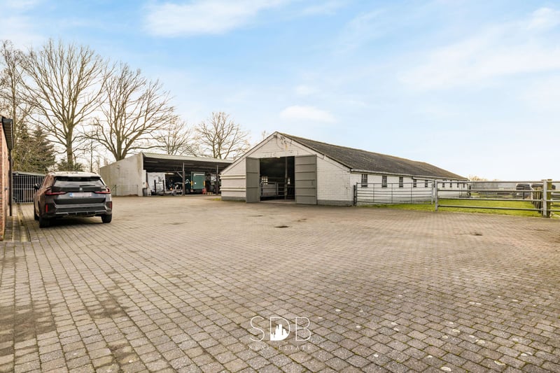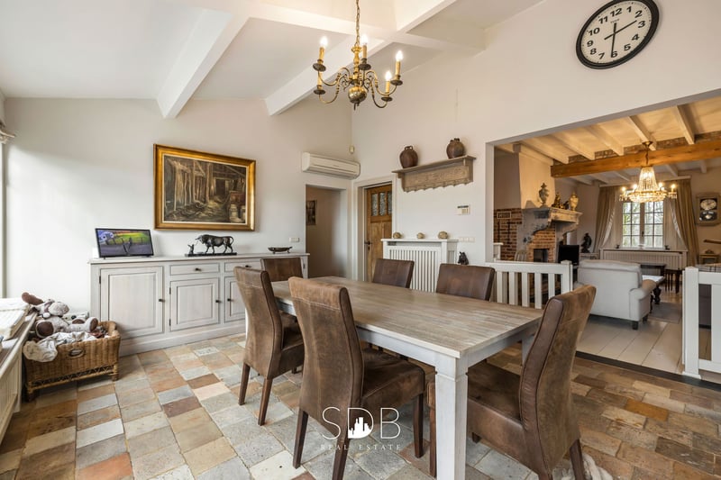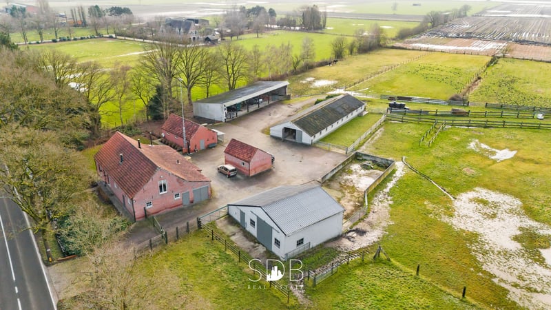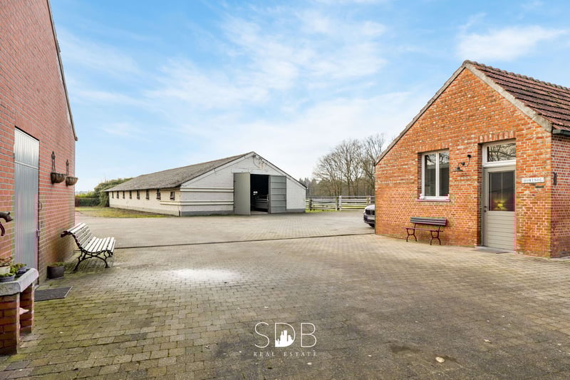 Diese ländlich gelegene Anwesen befindet sich in Turnhout, in der Provinz Antwerpen, auf circa 9,3 Hektar Land. Das großzügige Gehöft mit authentischen Stallgebäuden und Weideflächen entführt Sie in die Pracht und Schönheit der grünen Umgebung. Und denselben Charme spürt man auch im Inneren des Hauses. Der ländliche Wohnstil prägt das gesamte Anwesen und setzt schnell einen Trend. Dabei liegt der Fokus auf natürlichen Materialien und rustikalen Elementen. Das geräumige Wohnzimmer besticht durch sein Eichenbalken-Decken und den offenen Kamin, der für eine gemütliche Atmosphäre sorgt. Die großzügige Landhausküche hat ein zeitloses und einladendes Erscheinungsbild. Die Küche mit Kücheninsel ist mit allen notwendigen Geräten ausgestattet. Die großen Fenster sorgen für viel natürliches Tageslicht und schaffen eine enge Verbindung nach draußen. Angrenzend befindet sich ein Abstellraum mit Anschlüssen für Waschmaschine und Trockner sowie viel Stauraum. Im Erdgeschoss finden Sie ein vollwertiges Schlafzimmer mit Ankleidebereich. Ebenso gibt es ein modernes Badezimmer, ausgestattet mit einem Waschbecken, einer Badewanne, einer Dusche und einem WC. Im ersten Stock befinden sich zwei großzügige, frei gestaltbare Wohnräume. Diese können als Schlafzimmer genutzt werden, bieten aber auch die Möglichkeit, zusätzlichen Wohnraum oder Hobbyräume zu schaffen. Außerdem gibt es ein zweites modernes Badezimmer mit einem Waschbecken, Badewanne, Dusche und WC. Die Einbauschränke im oberen Stock sind perfekt auf den verfügbaren Raum abgestimmt und bieten zahlreiche praktische Staumöglichkeiten. Das Haus verfügt über eine Garage für zwei Fahrzeuge, mit angrenzendem Abstellraum. Außen befindet sich ein weiteres kleines Haus, eingerichtet mit einer gemütlichen Sitzecke und Essecke, einem Schlafzimmer sowie einem Badezimmer mit Waschbecken, Dusche und WC. Dieses Gästehaus bietet Möglichkeiten zur Vermietung oder dient als idealer Rückzugsort für Teenager im Haus oder als neue Man Cave, um dem Alltag zu entfliehen. Auf dem Grundstück befinden sich mehrere Nebengebäude. Das erste Nebengebäude umfasst 77,14 m² und bietet eine beeindruckende Lagerfläche. Aktuell dient es als Werkstatt und Pferdewagen-Depot, kann aber nach Wunsch umgestaltet werden. Das zweite Nebengebäude hat eine Fläche von 136,93 m² und bietet Raum in Volumen und Höhe, mit vielfältigen Nutzungsmöglichkeiten. Das dritte Nebengebäude umfasst beeindruckende 334,57 m². Es ist derzeit für die Tierhaltung ausgelegt, lässt aber nach Bedarf viel Freiraum für andere Nutzungen. Das vierte Gebäude misst 319,46 m² und ist derzeit eine offene Konstruktion, die je nach Aktivität flexibel genutzt werden kann. Dieses Anwesen besitzt ein unbezahlbares Volumen an bebauter Fläche – ein enormer Mehrwert für landwirtschaftliche Tätigkeiten oder Zuchtbetriebe. Entlang der Gebäude ist die Einfahrt mit Mosaikkieseln gepflastert, sodass keine Beeinträchtigung im Winter entsteht. Nach hinten hin eröffnet sich ein Blick ins Unendliche auf die angrenzenden Weiden. Verschiedene Wiesen sind in einzelne Parzellen unterteilt und eingezäunt, ideal, um Ihre Tiere oder Pferde täglich frei laufen zu lassen. Mit herrlichem Ausblick auf das umliegende Grün und dem Komfort der verschiedenen Nebengebäude fühlt man sich hier als Tierliebhaber voll und ganz zuhause. Aber auch Naturliebhaber werden diese Immobilie begeistern! Träumen Sie von einem wunderschönen Gehöft mit grünen Weitblicken, raschelnden Blättern im Hintergrund und einer natürlichen Lebensumgebung für Ihre Tiere und/oder Pferde? Zögern Sie nicht, uns zu kontaktieren.