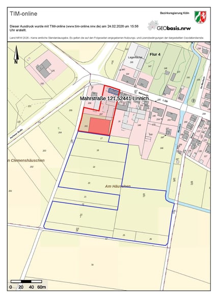 Property Description The property offered is a spacious former farmstead built in 1903, featuring extensive stables and outbuildings, as well as an indoor riding arena, all situated on a contiguous plot of approximately 4,260 m² in Linnich. The residential building, located at the street frontage, has a living area of about 160 m² spread over two floors, including a basement, and comprises a total of seven rooms. It is currently inhabited by the owners and, together with the rear farm buildings, forms a traditional courtyard with a classic rural character. The generously sized living room features a fireplace, creating a cozy living atmosphere and highlighting the rural charm of the house. Modernizations of the residential building: - Replacement of the gas heating system in 2021 - Installation of a welded wire fence in 2020 Equestrian Facilities & Stables The property offers a solid infrastructure for horsekeeping: - Indoor riding arena measuring approximately 20 x 40 meters - Outdoor riding arena approximately 30 x 50 meters (leased) - About 25 horse stalls/stable places - Several stable sections - Open stable areas - Turnout and outdoor paddocks - Paved courtyard areas Additionally, there are a workshop, garages, and ample parking spaces available. Flexible Usage & Rental Potential Depending on the concept, there are options to: - Rent out the main house separately, - Rent the horse stalls (up to 25 options) individually or as a whole, - Or combine residential living with a horse operation economically. This creates, beyond personal use, attractive income potential in the area of boarding horses or residential rentals (subject to official permits and individual contractual arrangements). Land & Lease Areas The freehold property covers approximately 4,260 m² and forms a contiguous courtyard and utility area. Furthermore, around 4 hectares of meadows directly adjacent to the farm are leased. The transfer or continuation of the lease agreement will be arranged with the respective lessor. The immediately neighboring meadow areas provide ideal conditions for close-to-field, species-appropriate horsekeeping with short travel distances. Condition & Development Potential The buildings are generally in a condition appropriate for their age. Modernization and, if necessary, renovation measures are required depending on the planned use. Particularly for commercial use or operational development, investments should be considered in the following areas: - Energy optimization of the residential building - Modernization of stable and hall technology - Adaptation of the riding facilities to current standards - Building law review for change of use The estate thus offers interesting and versatile development potential for both self-users and investors. The information contained in this exposé is based on details provided by the owner. It serves solely for non-binding preliminary information and does not constitute a legally binding basis. No guarantee is given for the accuracy, completeness, or timeliness of the information. The offered property is subject to a commission of 3.57% of the purchase price, including VAT, payable by the buyer.