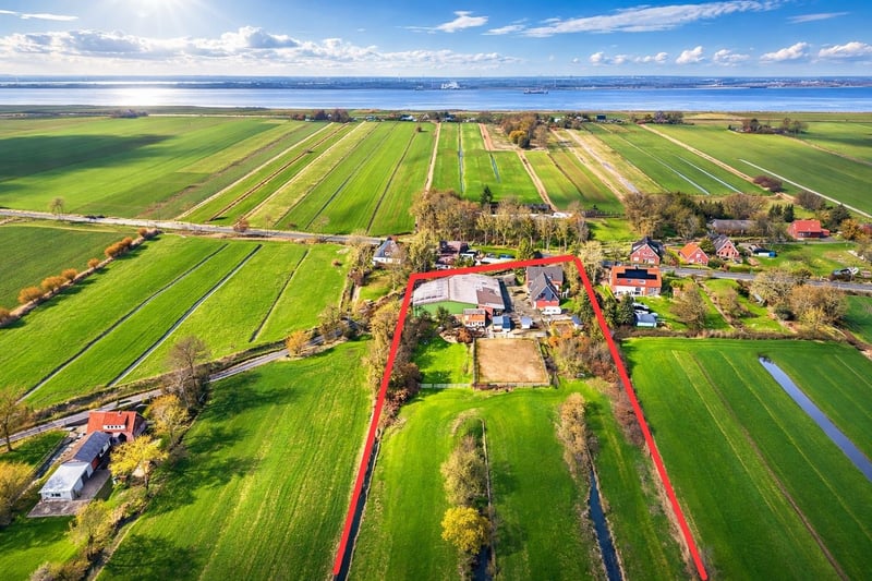 Viel Platz für Menschen, Tiere, Träume! Herzlich willkommen auf „Gut Esch“! Diese einzigartige Pferdeimmobilie bietet entspannten Komfort und Sicherheit für Menschen und Tiere und überzeugt durch ihre idyllische Lage sowie eine gute Infrastruktur vor Ort und verkehrsgünstige Anbindungen. Das Hofensemble umfasst drei Gebäude: das mit einer Wohnfläche von 204 m² angenehm geräumige, kernsanierte Wohnhaus mit Energieeffizienzklasse C, eine solide gebaute Rotstein-Scheune und eine große Mehrzweckhalle. Alle Gebäude befinden sich innerhalb eines als Bauplatz ausgewiesenen Areals und sind durch einen asphaltierten Hof miteinander verbunden. Die gesamte Fläche des Anwesens beträgt 30.388 m² und ist komplett eingezäunt. Gutshaus: Das großzügige, lichtdurchflutete Wohnhaus wurde energetisch effizient kernsaniert und bis zum heutigen Tage durchgängig renoviert. Ein neuer Öl-Heizkessel mit Energieeffizienz A+ aus September 2024 sowie ein italienischer Specksteinkaminofen in der Küche und ein Kamin im Wohnzimmer, die mit Holz vom eigenen Grundstück befeuert werden, sorgen für wohlige Wärme. Die Bodenbeläge bestehen aus Fliesen, Eichendielen und Eichenparkett aus 2012. Die Fenster im OG und die von Meisterhand gefertigte Eingangstür wurden 2017 erneuert. Das Dach wurde 2015 neu gedeckt. Die Deckenhöhe von 3,30 m gibt dem Erdgeschoss eine ganz besondere, herrschaftliche Atmosphäre. Durch die einladende Eingangshalle betritt man den großzügig dimensionierten Wohnbereich mit Kamin, an den ein Wellnessbereich mit Sauna und Duschbad angrenzt. Die mit einer geräumigen Einbauküche der Firma Miele ausgestattete Küche führt in ein lichtdurchflutetes Esszimmer, von dem aus sich eine Terrassentür auf die Terrasse und in den Garten öffnet. Weitere Türen der Küche führen in den Keller und in den praktischen Hauswirtschaftsraum im Erdgeschoss, von dem man in den 36 m² großen unbeheizten Wintergarten gelangt, der Gutshaus und Scheune verbindet. Ein gut proportioniertes Schlafzimmer rundet das Raumangebot im Erdgeschoss ab. Eine bequeme Treppe führt von der Eingangshalle in das Obergeschoss, das atmosphärisch an ein modernes Cottage erinnert. Eine helle Lounge, von der aus der Blick Richtung Elbe über den mit Rosen, Rhododendren und altem Baumbestand bewachsenen Vorgarten schweift, empfängt den Besucher. Im riesigen Schlafzimmer gibt es viel Raum für mehr als süße Träume. Von den drei weiteren Zimmern wird eines als Büro genutzt. Das im Jahre 2023 neu gestaltete, helle Wannenbad ist mit eleganten magnolienfarbenen Möbeln mit Akzenten aus heller Eiche ausgestattet. Die ehemalige Küche im Obergeschoss wurde in einen begehbaren Kleiderschrank umgestaltet. Dabei wurden die Küchenanschlüsse hinter der Wandverkleidung erhalten, sodass hier ein Rückbau zu einer Küche problemlos möglich ist, sollte eine eigenständige Wohnung im Obergeschoss gewünscht sein. Scheune: Die zweigeschossige Scheune ist aus soliden Rotsteinen gebaut und hat eine Grundfläche von 150 m². Das Dach wurde 2015 neu aufgebaut und mit denselben Dachziegeln wie das Haupthaus eingedeckt, sodass optisch ein stimmiges Gesamtkonzept entsteht. Der untere Bereich der Scheune ist bereits komplett isoliert. Anschlüsse für Wasser, Abwasser, Strom und Heizung sind vorhanden. Mehrzweckhalle: Hier kommen Pferdefreunde voll auf ihre Kosten. Die ehemalige Gewerbehalle beherbergt 5 Pferdeboxen mit beheizten Tränken, eine Sattelkammer mit Werkbank und ein Heulager. Der Indoor-Reitplatz bietet mit einer Größe von 16 m x 23 m Trainingsmöglichkeiten bei jedem Wetter. Des weiteren sind ein gefliester Bürotrakt mit Duschbad, ein Bereich für den Gabelstapler und ein großer isolierter Lagerraum in dem Gebäude untergebracht. Grundstück und Außenanlagen: Das gesamte, von der Straße nicht einsehbare Gelände ist eingezäunt und von Gräben umgeben, was es für die Tierhaltung besonders sicher macht. Die Hoffläche ist asphaltiert. Ein Teil wurde zu zwei Hartpaddocks umgestaltet und mit 4 Außenboxen, einer Heubox und einer Toilettenbox für die Pferde versehen. Das ermöglicht es den Pferden, sich auch in den Wintermonaten auf trockenem Untergrund zu bewegen und verhindert so Huf- und Hautkrankheiten. Die Tränke im Außenbereich ist beheizt und bietet ganzjährig fließendes Wasser. Hinter dem Hartpaddock liegt der 25 m x 35 m große Außenreitplatz, hinter dem sich die Weideflächen erstrecken und ein Apfelwäldchen. Eine spezielle Pferdegras- und Kräutermischung wurde auf den Weiden eingesät und garantiert die Gesundheit der Tiere während der Weidesaison. Der Reitplatz wird umsäumt von einem Selbstversorgergarten auf der einen und einer Hundetrainingswiese mit Kinder-Naschobst-Bäumen auf der anderen Seite. Hier können kleine Entdecker unbesorgt und gut behütet die grüne Welt erobern. Um das Gutshaus herum sorgen alte Baumbestände, Rhododendren und unzählige Rosen für eine wundervoll entspannte Atmosphäre in einem privaten, nicht einsehbaren Garten. Wie wäre es mit einem Sundowner auf der italienischen Terrasse mit Löwenspringbrunnen oder unter dem schützenden Dach der großen Pergola?