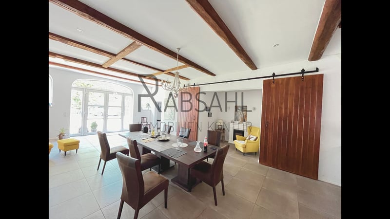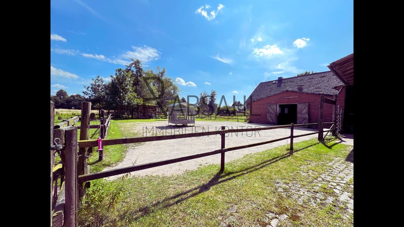 Bienvenido a su nuevo hogar: una antigua granja renovada con encanto en Rhade. Esta propiedad única combina el idilio rural con el confort de la vida moderna y ofrece una amplia gama de usos posibles. La casa, de una planta y media, tiene una superficie habitable total de unos 200 m², distribuidos en siete habitaciones, tres de las cuales son amplios dormitorios y tres cuartos de baño diseñados con estilo. El equipamiento de alta calidad incluye suelos de parqué y baldosas, que junto con la calefacción por suelo radiante crean un ambiente agradable. La propiedad en venta tiene un sótano parcial y ofrece aparcamiento y espacio de almacenamiento adicionales. Destaca especialmente el granero, que ha sido bellamente convertido en cocina y comedor y resalta perfectamente el encanto de la casa. El pajar también ofrece posibilidades de ampliación, por lo que la creatividad no tiene límites. Para los amantes de los caballos, esta granja restante cumple todos los deseos: un prado, un prado, dos establos abiertos, cuatro boxes y un almacén de heno ya están disponibles y permiten mantener a los caballos justo al lado de la casa. Disfrute de los días soleados en la acogedora terraza, que invita al descanso y ofrece una vista directa de los caballos. La granja de caballos está disponible inmediatamente previo acuerdo y le ofrece la oportunidad única de llamar suyo a un trozo de idilio rural en Rhade. No dude en ponerse en contacto con nosotros hoy mismo para concertar una visita. ¡Esta propiedad pronto podría ser su nuevo hogar! La finca que se ofrece está totalmente equipada para la cría de caballos. Cuatro caballos (dos caballos grandes, dos ponis) actualmente tienen su hogar aquí. El paddock con un gran henil se extiende por la parte sur del jardín y está justo al lado de la casa. En el lado este hay un establo abierto construido en 1980 para los caballos. El establo separado alberga cuatro boxes para caballos y el almacén de heno. En el lado oeste, en la dependencia, hay otro establo abierto, que a los caballos les gusta utilizar como protección solar en verano. Todos los establos y dos boxes están equipados con suelo forestal de alta calidad, los boxes de ventana con pellets de paja. Hay un abrevadero con calefacción y es posible organizar todo el paddock como establo activo. Justo al lado del paddock se encuentra el pasto de verano, así como un corral redondo y una zona abierta que puede utilizarse como picadero si es necesario. En general, los caballos y sus propietarios encontrarán en esta finca las condiciones óptimas para mantener hasta 8 caballos. La encantadora granja restante se encuentra en el idílico pueblo de Rhade. Rhade pertenece al municipio de Selsingen y se encuentra en la encantadora campiña del triángulo Elba-Weser en Baja Sajonia. Esta ubicación tranquila y natural ofrece tanto relax como numerosas oportunidades para realizar actividades de ocio en los alrededores. Las ciudades de Bremen, Hamburgo y Bremerhaven son fácilmente accesibles gracias a las buenas conexiones con la carretera federal B71 y la cercana autopista A1. Además, la cercana ciudad de Zeven ofrece una completa infraestructura con tiendas, escuelas, guarderías y atención médica. Los campos y bosques de los alrededores ofrecen un magnífico telón de fondo para pasear a pie, en bicicleta o a caballo. La propia Rhade se caracteriza por una armoniosa comunidad de pueblo y ofrece diversos actos culturales y deportivos que fomentan la interacción social. La ubicación combina las ventajas de la vida rural con las comodidades de la proximidad urbana. Esta combinación de ubicación tranquila, buena accesibilidad y amplia infraestructura hace de la granja ecuestre de Rhade un lugar ideal para familias, amantes de la naturaleza, propietarios de caballos y cualquier persona que aprecie la vida en el campo. Datos generales: Superficie habitable: aprox. 200 m² Superficie parcela: 16.333 m² Calefacción: Suelo radiante, caldera de gas Certificado energético: en preparación Gastos de intermediación: 2,65% IVA incl. Esta oferta está sujeta a una comisión de intermediación para el comprador. Tras la firma de un contrato de compraventa notarial, se devengará una comisión de intermediación del 2,65% más IVA. Se ha acordado con el vendedor una cláusula en el mismo sentido. Toda la información ha sido facilitada por el vendedor. Rabsahl Immobilien Kontor no asume ninguna responsabilidad por la exactitud de toda la información. Sujeto a venta previa. El certificado energético se está preparando actualmente y se puede presentar para su visualización.