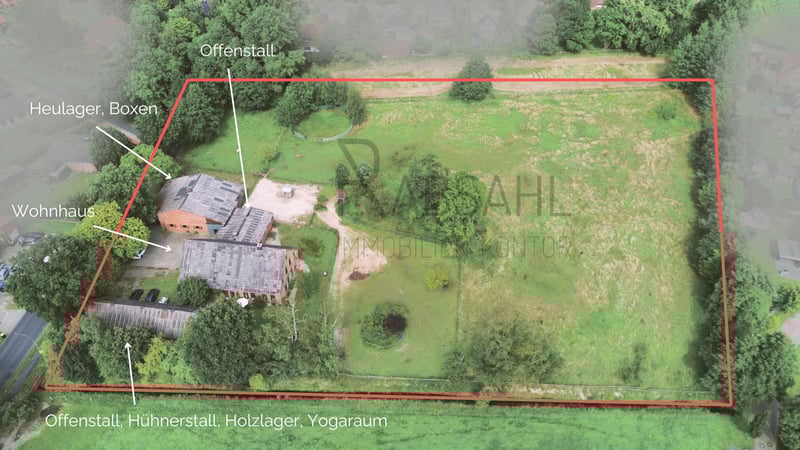 Willkommen auf einem außergewöhnlichen Hofensemble, welches heute so nicht mehr gebaut werden könnte. Dieses Anwesen vereint eine beeindruckend sanierte Tenne, großzügige Wohnbereiche, moderne Ausstattung und eine vollständig genehmigte Pferdeanlage auf einem über 16.000 m² großen Grundstück. Die Immobilie bietet eine seltene Kombination aus historischem Charme, hochwertiger Sanierung und professioneller Pferdeinfrastruktur – alles bereits vorhanden, alles sofort nutzbar. Die ausgebaute Tenne bildet das Herzstück des Hauses: ein lichtdurchfluteter Wohn- und Essbereich, der mit sichtbaren Balken, großzügiger Raumhöhe und einem modernen Ausbau für ein einzigartiges Wohngefühl sorgt. Mit sieben Zimmern, drei Bädern und ca. 200 m² Wohnfläche bietet das Wohnhaus viel Platz für Familien, Pferdeliebhaber oder Menschen, die das Leben auf dem Land schätzen. Dank Fußbodenheizung, Kamin, Parkett und durchdachter Raumaufteilung verschmilzt moderner Wohnkomfort nahtlos mit dem Charakter eines historischen Hofes. Der tatsächliche Wert des gesamten Ensembles – Wohnhaus, Tenne, Offenställe, Boxen, Nebengebäude, Weiden und Anlage – würde heute deutlich über 1.000.000 € liegen. Der Angebotspreis von 595.000 € stellt damit einen außergewöhnlichen Wertvorteil dar. Mögliche Modernisierungen, beispielsweise im Bereich energetischer Optimierungen, sind klar kalkulierbar, überschaubar und optional – sodass Käufer den Standard nach den eigenen Wünschen bestimmen können. Für Pferde-/Tierliebhaber erfüllt dieses Ensemble sämtliche Wünsche: Ein Paddock, eine Wiese, ein Offenstall und ein Heulager sind bereits vorhanden und ermöglichen eine Pferde-/Tierhaltung direkt am Haus. Die Pferdehaltung ist genehmigt! Gerne zeigen wir Ihnen bei einer Besichtigung dieses Ensemble und Sie können sich einen Eindruck dieser außergewöhnlichen Immobilie machen. AUSSTATTUNG: Dieses Hofensemble bietet eine Ausstattung, die in dieser Form nur selten auf dem Markt zu finden ist. Die vollständig genehmigte Pferdehaltung macht das Objekt besonders attraktiv für ambitionierte Pferdehalter und kleine Anlagenbetreiber. Wohnhaus & Tenne: hochwertig ausgebaute Tenne als Wohn- und Lebensmittelpunkt 7 Zimmer, ca. 200 m² Wohnfläche 3 stilvolle Badezimmer Parkett- und Fliesenböden Fußbodenheizung & Kamin lichtdurchflutete Räume, modernisiert und sofort nutzbar teilweise unterkellert Pferdehaltung & Außenanlage: vollständige, genehmigte Pferdeanlage zwei Offenställe vier geräumige Pferdeboxen (weitere Boxen möglich) großes Heulager Paddock mit großer Heuraufe Roundpen Sommerweide direkt am Haus hochwertige Böden in Ställen (Waldboden / Strohpellets je nach Bereich) beheizbare Tränke Aktivstall-Option möglich geeignet für bis zu 10 Pferde Wert- und Zukunftspotenzial: Grundstücksfläche ca. 16.333 m² Möglichkeit für ein weiteres Baugrundstück Sofort nutzbare Anlage, keine Genehmigungshürden optional planbare Modernisierungen LAGE: Der Resthof liegt in idyllischer Lage in Rhade, einem Ortsteil der Samtgemeinde Selsingen – mitten im charmanten Elbe-Weser-Dreieck in Niedersachsen. Die Umgebung bietet weite Felder, Wälder, Reitrouten und viel Natur, ohne auf eine gute Anbindung verzichten zu müssen. Über die nahegelegene B71 und die Autobahn A1 erreichen Sie komfortabel die Städte Bremen, Bremerhaven und Hamburg. Im nahegelegenen Zeven stehen sämtliche Versorgungseinrichtungen des täglichen Lebens zur Verfügung: Einkaufsmöglichkeiten, Schulen, Kindergärten, Ärzte und Freizeiteinrichtungen. Rhade selbst ist geprägt von einer freundlichen Dorfgemeinschaft, die ein ruhiges, naturnahes Leben ermöglicht. Für Pferdehalter, Familien, Naturliebhaber oder Menschen, die Wert auf Privatsphäre und viel Platz legen, bietet die Lage optimale Voraussetzungen. Ausritte beginnen praktisch direkt vor der Haustür. SONSTIGE ANGABEN: Der gesamte Anlagenwert (Wohnhaus, Tenne, Stallungen, Offenställe, Nebengebäude, Infrastruktur und Grundstück) liegt realistisch über 1.000.000 € – ein enormer Vorteil gegenüber einem vergleichbaren Neubau. Der Angebotspreis von 595.000 € ermöglicht einen deutlichen Wertvorteil und bietet Käufern wirtschaftliche Sicherheit. Alle Angaben basieren auf Eigentümerinformationen; für deren Vollständigkeit oder Richtigkeit wird keine Haftung übernommen. Modernisierungen sind optional und kostenklar kalkulierbar. Die Immobilie ist nach Absprache verfügbar. Ideal geeignet für private Pferdehaltung, kleine Reitanlage, Tierhaltung oder Menschen, die ein großzügiges, vielseitiges Anwesen suchen. Dieses Angebot ist für die Käufer provisionsfrei. Der Energieverbrauchsausweis enthält folgende Werte: Endenergieverbrauch: 188 kWh/(qm*a) Gültig bis: 14.06.2026 Energieeffizienzklasse: F Warmwasser enthalten