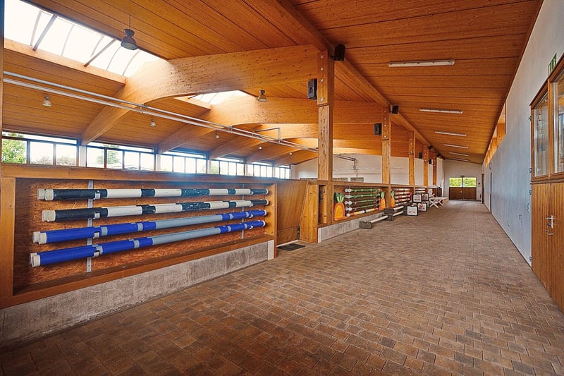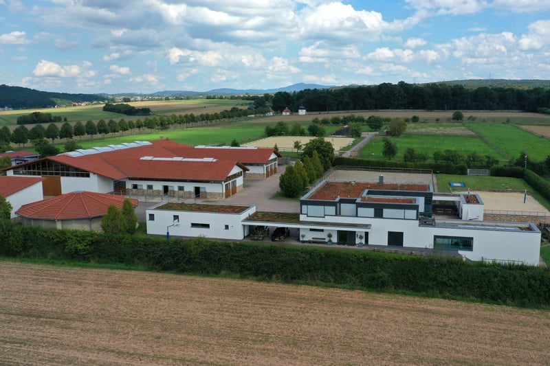 Dieses luxuriöse Anwesen nordöstlich Frankfurt verbindet anspruchsvolles Wohnen mit einer erstklassigen privaten Reitanlage. Die moderne Villa mit Wellnesslandschaft, Pool und großzügigen Wohnbereichen bietet ein Ambiente, das keine Wünsche offenlässt. Die hochwertig ausgestattete Reitanlage umfasst Paddockboxen, einen kleinen Offenstall, weitläufige Koppeln sowie Reitplätze im XXL-Format. Im Kopfbau der Reithalle befinden sich eine Betriebsleiterwohnung und ein stilvolles Gästeappartement – ideal für Familie, Personal oder Besucher. Ein Anwesen für Menschen, die Exklusivität, Ruhe und Pferdeliebe auf höchstem Niveau vereinen möchten. Lage: Hessen, Großraum Frankfurt, nordöstlich, gut angebunden an die A66 Die angegebene Lage ist nicht mit dem tatsächlichen Standort identisch um die Identität nicht preiszugeben. Sonstiges: EnEv ist in Vorbereitung. Der Kaufpreis versteht sich zzgl. 3,57% Maklercourtage inkl. MwSt. Das Inventar und die Maschinen sind nicht im Kaufpreis enthalten. Die angegebene Lage ist nicht mit dem tatsächlichen Standort identisch um die Identität nicht preiszugeben. Gerne stellen wir Ihnen ausführliche Informationen zur Verfügung. Bitte nehmen Sie Kontakt mit uns auf. Vielen Dank. Weitere Bilder dieses Objektes und weitere Immobilienangebote finden Sie auf www.wir-immobilien.com W.I.R. Immobilien - Ihr Fachimmobilienmakler für Reitsportanlagen und landwirtschaftliche Anwesen