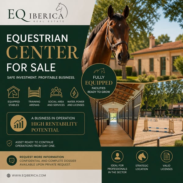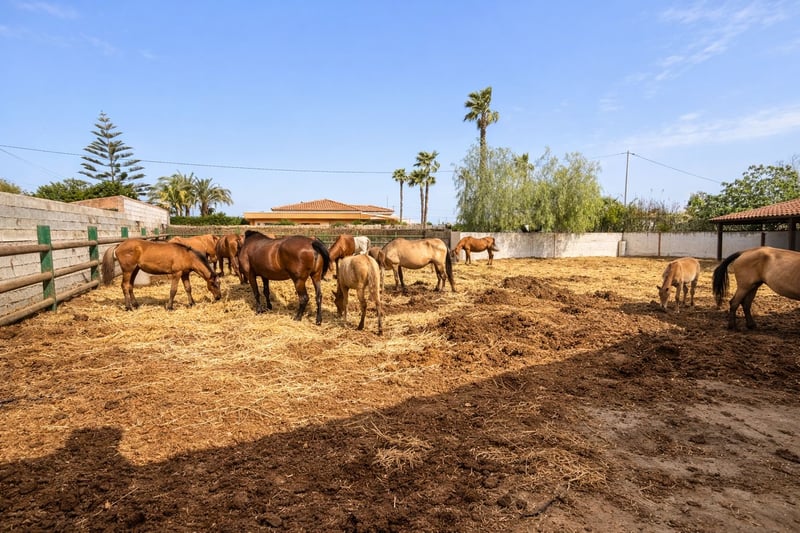 Estas buscando una vivienda donde poder disfrutar de tu finca ecuestre? Desde EQ iberica te presentamos esta preciosa propiedad. Nos encontramos ante una precioso Chalet con piscina, pista de tenis y jardines exteriores con una instalación hípica adosada de 8.000m2. La propiedad se encuentra en la Vega Baja de Alicante, próxima a Torrevieja y con rápidos accesos a la AUTOVIA A-7. 30 min al aeropuerto de Alicante y 60 min hasta las instalaciones de OLIVA NOVA MET. Actualmente la propiedad se encuentra en pleno funcionamiento con todas las licencias en regla. La propiedad cuenta. -Nave con 21 box -Box con paddock -Box para Yeguas -Corral de 40x20 com caballos en libertad -Pista entrenamiento 15x15 -Pista entrenamiento 20x40 -Rega 30 caballos -Zona social con vestuario ---Vivienda 300m2----- -3 dormitorios -Salon comedor -Cocina -2 baños completos -Piscina de 10x6 -Pista de tenis La vivienda cuenta con todas las comodidades para el día a dia. ( Por privacidad de los propietarios no se publicarán imágenes del interior ni exterior de la vivienda) Las imágenes han sido modificas manteniendo los espacios y aspecto lo mas reales posibles para privacidad de los propietarios. Para mas información escribenos
