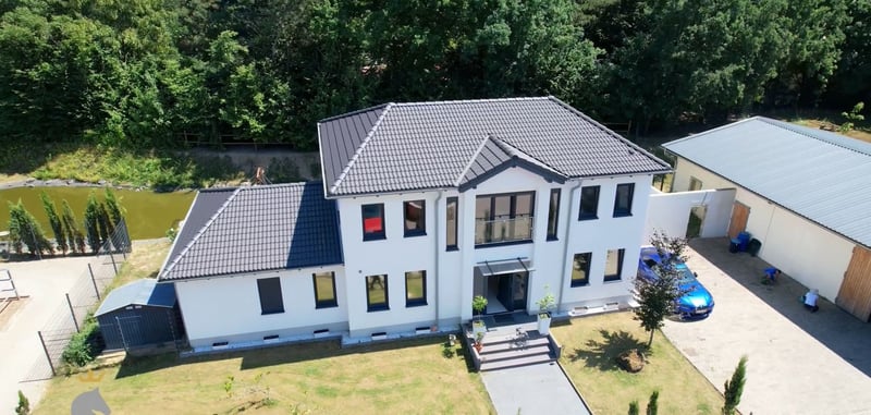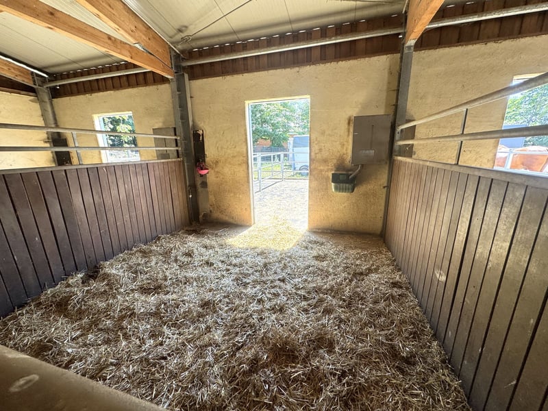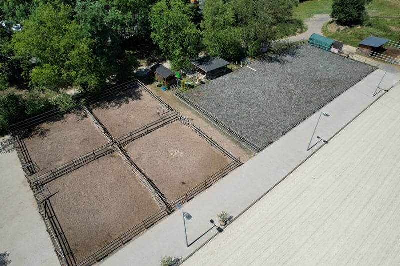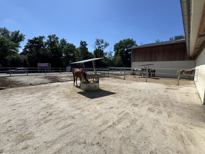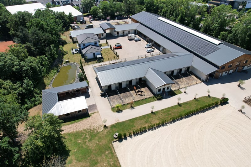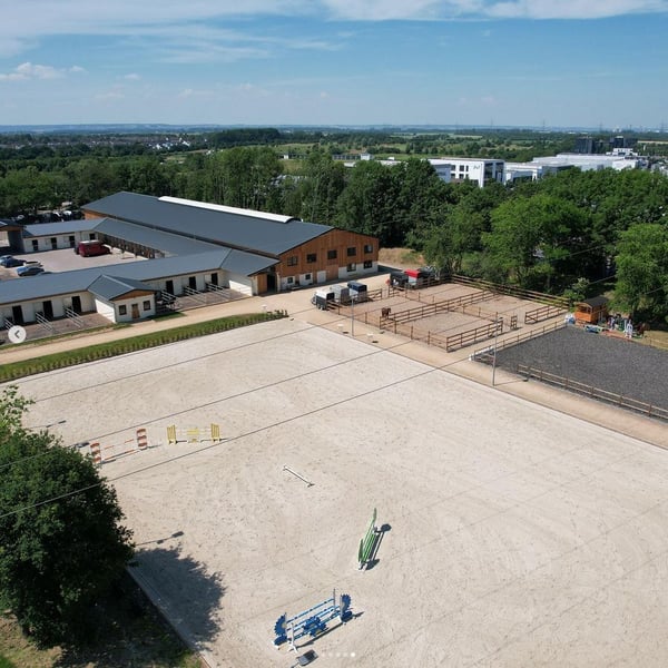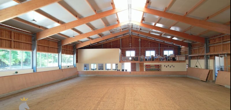 For sale is a first-class equestrian facility located in the heart of one of Germany’s most economically and infrastructurally attractive regions – ideally situated within the catchment area of the Bonn and Cologne metropolitan regions. The riding facility uniquely combines modern architecture, well-designed operational workflows, and top-quality construction with a stylish ambiance and versatile usage options. Whether as a riding center, training and trading operation, or event venue – this property meets all the requirements of a forward-looking equine business. The property is conveniently situated just minutes from the highway, ensuring optimal accessibility for clients, participants, and suppliers – a crucial advantage for daily operations and events. The entire estate was designed and built just a few years ago according to the latest standards. The focus was on functionality, economic efficiency, and species-appropriate horsekeeping. High-quality, solid construction meets energy-efficient planning – short distances and well-thought-out infrastructure enable cost-effective operation while providing high comfort for horses, riders, and staff. The centerpiece of the facility is the spacious indoor riding hall measuring 20 x 60 meters. The hall is flooded with natural light, features a high-quality riding surface, automatic watering system, and a fully mirrored short side. One end houses an office, which can be used multifunctionally as a competition registration area, administrative office, or catering space, along with a large spectator tribune offering excellent views of the arena. On the opposite end, there is a spacious machinery and forage hall, as well as a thoughtfully integrated manure storage. An attached stable block with wide aisles completes the functional main building. Additionally, this building includes staff accommodation. Overall, the facility offers space for approximately 60 horses. Most stalls are generously sized, light-filled, and approximately 4 x 4 meters, with some featuring covered outdoor paddocks measuring 4 x 8 meters. The majority of the boxes are equipped with modern automatic feeding systems for concentrated feed and provide an optimal stable climate. Complementing these are several large turnout paddocks, allowing flexible occupancy – suitable for broodmares, young horses, or group housing. For daily training and exercise, an excellent outdoor riding arena with an ebb-and-flow system is available beside the indoor hall. Measuring 40 x 70 meters with a top-quality riding surface, this arena meets the highest standards. Additional paved movement paddocks and a smaller area for lunging or free work complete the area. The directly adjacent pastures offer further options for species-appropriate horsekeeping. The entire infrastructure is designed for efficiency and profitability. An innovative manure management system significantly reduces personnel and time costs: manure is directly transported from the stalls via a floor hatch into a processing plant where it is shredded and automatically disposed of. This not only saves costs but also enhances hygiene throughout the stable area. Another highlight is the harmoniously integrated manager’s house, built in solid, modern prefabricated construction. This residence impresses with its stylish appearance and high functionality. Spread over two levels, it is ideal for farm managers, families, or staff. The modern design features clean lines, large windows, and bright rooms, providing a pleasant living environment. Almost all rooms offer a wonderful view of the riding facility. The building is environmentally friendly heated via a high-performance heat pump. A spacious, elegant terrace and a lovingly landscaped pond add to the quality of life right outside the door. Naturally, the entire riding facility includes all necessary ancillary and functional rooms for professional operation – generous wash bays, tack and feed rooms, storage spaces, sanitary facilities, and ample garages and parking spaces for cars and trailers. The well-planned layout ensures smooth workflows even during high operational volume or events. Thanks to its attractive location and excellent infrastructure, the riding facility is not only functional and stylish but also highly economically interesting. Regional box rent starts at just €700 per month, guaranteeing a stable and attractive income. Moreover, the property offers multiple revenue streams: horse training, trading, riding lessons, courses, rentals, or event hosting. The facility has proven its suitability as a tournament venue: it has successfully hosted several international equestrian competitions. Summary: This riding facility presents a rare opportunity for investors, equestrian enthusiasts, or entrepreneurs seeking a highly modern, economically managed, and versatile equestrian property. The combination of a prime location, top-notch equipment, and substantial economic potential makes this property a true highlight on the market. Brief Overview – Modern Equestrian Facility near Bonn/Cologne Location: • Prime location within the catchment area of Bonn and Cologne • Excellent connectivity, close to the highway • Quiet, rural surroundings with optimal accessibility Buildings & Infrastructure: • Built recently, a few years ago • High-quality, solid construction • Modern, well-designed concept for efficient management • Main building with a 20 x 60 m riding hall • Good riding surface, automatic watering, mirror wall • Office/registration area, catering space, tribune • Machinery hall, forage storage, manure hall • Directly attached stable block • Staff apartment Horsekeeping: • About 40 spacious boxes (4 x 4 m), some with paddocks (4 x 8 m) • Floodlit, equipped with feeding automats • Various turnout paddocks – total capacity for around 60 horses • Directly adjoining pastures Outdoor Facilities: • Riding arena (40 x 70 m) with ebb