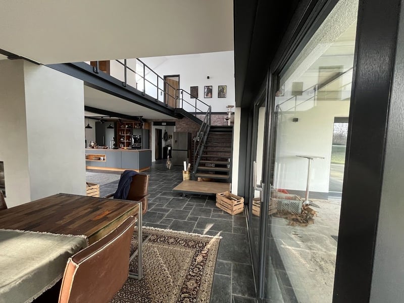 Établissement équestre situé entre la Münsterland et l'Ostwestfalen – une infrastructure de très haut niveau pour les passionnés de chevaux, offrant d’excellentes conditions d’entraînement, même à proximité immédiate. À seulement 15 minutes du DOKR et de nombreux entraîneurs renommés. Le site, entièrement rénové avec soin, comprend une maison d’habitation de 243 m², y compris un appartement indépendant, une carrière couverte avec des écuries attenantes (5 boxes), un box séparé (4 boxes), des garages, un grand carport, une grande carrière extérieure éclairée, des pâturages clôturés, des paddocks en sable, et bien plus encore. Après rénovation, la maison répond aux normes KfW 70, équipée notamment de panneaux photovoltaïques, d’un poêle à eau, d’une pompe à chaleur, de triple vitrage, etc. Ce domaine est idéal pour des cavaliers professionnels avec une clientèle exclusive ou pour une gestion privée de chevaux, si vous souhaitez profiter de la tranquillité et de la vie en harmonie avec vos chevaux, sans renoncer au confort et à d’excellentes conditions d’entraînement. La maison, moderne, haut de gamme et chaleureuse, invite à la détente. Profitez de l’une des terrasses ou de la grande cuisine ouverte avec vos amis, tout en ayant une vue dégagée sur les pâturages. Si vous souhaitez vous sentir chez vous ici, n’hésitez pas à nous contacter pour organiser une visite. Nous vous envoyons volontiers la documentation relative à la maison, le certificat de performance énergétique, ainsi que d’autres photos sur demande.