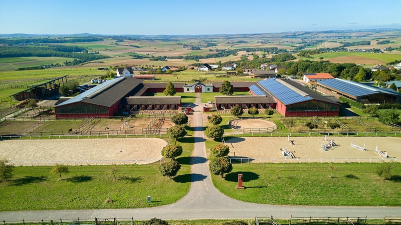 Reitanlage im Pferdepark im Maifeld – in Mitten des Sonderbaugebietes “Wohnen mit Pferden” in Lonnig! Objektbeschreibung: Diese professionelle Reitsportanlage im rheinland-pfälzischen Lonnig bietet optimale Bedingungen für ambitionierte Pferdesportler, Züchter oder Investoren auf 83.180 m² Grundstück im Eigentum. Die weitläufige und durchdacht konzipierte Anlage wurde im Jahr 2000 errichtet und ist auf die Haltung und Versorgung von bis zu 60 Pferden ausgelegt. Zwei Reithallen, zwei Reitplätze, diverse Stallformen und eine funktionale Infrastruktur machen sie zu einem idealen Standort für vielfältige Nutzungskonzepte im Reitsport. Das Stallgebäude wurde vom renommierten Hersteller Lambert Geerkens errichtet. Insgesamt stehen 16 Paddockboxen, 7 Innenboxen, 14 Offenställe (Laufställe für 1-4 Pferde) mit einer Länge von 22 Metern sowie 19 Fensterboxen zur Verfügung. Mehrere Sattelkammern, Futterkammern und sanitäre Anlagen für Kunden runden das Angebot ab. Die Anlage verfügt über zwei Reithallen mit den Maßen 20 x 60 Meter bzw. 20 x 40 Meter, jeweils in Leimbinder-Bauweise mit Sandboden. Zwei weitere Reitplätze (80 x 20 Meter und 60 x 20 Meter), beide mit drainiertem Sandboden, ermöglichen ganzjähriges Training im Außenbereich. Ein Longierzirkel sowie angrenzende Koppelflächen im Eigentum ergänzen das Gesamtbild sinnvoll. Vier Zisternen, Kundenparkplätze und eine große Bergehalle zur Futterlagerung mit Schotter-Unterbau aus dem Jahr 2010 bieten die notwendige Infrastruktur für einen reibungslosen Betrieb. Zur Wohnnutzung ist derzeit eine ca. 49 m² große Mitarbeiterwohnung mit angrenzendem Büro vorhanden, welche vermietet ist. Ursprünglich war der Ausbau einer großzügigen Einheit über zwei Etagen im mittleren Teil der Laufställe geplant – dieser Ausbau wurde jedoch nicht umgesetzt- sondern ein Seminarraum geplant – später eine Nutzungsänderung zu Laufställen erwirkt. Die Wärmezufuhr erfolgt über Strom, ein Gastank ist jedoch auch vorhanden; die Fenster sind zweifach verglast. Im Jahr 2023 wurde die bestehende Wohnung modernisiert. Besonderheit: Die Reitanlage liegt in Mitten des Sonderbaugebietes „Wohnen mit Pferden“. Ausstattung: Wohnmöglichkeit: - Baujahr Gebäude: 2000 - Derzeit gibt es eine 49 m² Mitarbeiterwohnung mit angrenzendem Büro (vermietet) - Heizung: Strom (Gastank vorhanden) - Fenster: Zweifach-Verglasung - Keller: nicht unterkellert - In 2023 wurde die kleine Wohnung renoviert Hinweis: Die Reitanlage wurde so erbaut, dass der mittlere Teil der Laufstelle ursprünglich als sehr große Wohnung über zwei Etagen ausgebaut werden sollte, der Plan wurde nicht verfolgt und es wurden Laufställe eingebaut und eine Nutzungsänderung dazu beantragt. Stallgebäude: - Baujahr 2000 - Tränken vorhanden (frostfrei) - Reiterstübchen und mehrere Sattelkammern vorhanden - 4x WC für Kunden vorhanden, eine davon behindertengerecht - Hersteller Stallungen: Lambert Geerkens Ausgelegt für 40-60 Pferde (je nach Nutzung der Laufställe): - 16 Paddockboxen - 7 Innenboxen - 14 Offenställe (Laufställe) ursprünglich für bis zu 4 Pferde (Maße 7 x 22 Meter) - 19 Fensterboxen Reithalle 1: - Baujahr: 2000 - Reitfläche: ca. 20 x 60 Meter - Boden: Sand-/Vließboden - Dach: Wellplatten - Bauweise: Leimbinder - Hersteller: Lambert Geerkens Reithalle 2: - Baujahr: 2000 - Reitfläche: ca. 20 x 40 Meter - Boden: Sandboden inkl. Holzspäne - Dach: Wellplatten - Bauweise: Leimbinder - Hersteller: Lambert Geerkens Reitplatz 1: - Baujahr: 2000 - Reitfläche: 80 x 20 Meter - Boden: Sandboden, drainiert Reitplatz 2: - Baujahr: 2000 - Reitfläche: 60 x 20 Meter - Boden: Sandboden, drainiert Koppeln: Im Eigentum befinden sich direkt Koppeln am Hof Weiteres: - Longierzirkel aus 2000 - 4 Zisternen - Bergehalle aus 2010 zur Futterlagerung, Schotter Unterbau - Genehmigte Mistplatte - Kundenparkplätze - Winterpaddocks Lage: Lonnig ist eine idyllisch gelegene Ortsgemeinde in der Verbandsgemeinde Maifeld im Landkreis Mayen-Koblenz in Rheinland-Pfalz. Über die nahegelegene Bundesstraße B258 sowie die B416 ist Lonnig hervorragend an das überregionale Straßennetz angebunden. Die Autobahnanschlussstellen Koblenz/Metternich (A48) und Ochtendung (A61) sind in wenigen Fahrminuten erreichbar und ermöglichen eine zügige Verbindung in Richtung Koblenz, Bonn, Köln sowie in die Eifel und das Rhein-Main-Gebiet. Die Fahrtzeit nach Koblenz beträgt mit dem Auto rund 20 Minuten, wodurch Lonnig auch für Berufspendler eine attraktive Wohnlage darstellt. Es handelt sich hier um eine Ortsgemeinde in der Verbandsgemeinde Maifeld im Landkreis Mayen-Koblenz und überzeugt durch eine ausgewogene Kombination aus ländlicher Lebensqualität und gut ausgebauter Infrastruktur. Familien profitieren von einer Kindertagesstätte direkt im Ort, während Grundschulen sowie weiterführende Schulen in den Nachbarorten Polch und Ochtendung gut erreichbar sind. Auch Koblenz bietet ein breites schulisches Angebot, darunter mehrere Gymnasien und berufliche Schulen. Die Nahversorgung ist durch die Nähe zu Polch und Ochtendung gesichert. Dort finden sich Supermärkte, Bäckereien, Apotheken sowie ärztliche Versorgung. Für weitergehende medizinische Leistungen stehen Facharztpraxen und Krankenhäuser im nur 20 Autominuten entfernten Koblenz zur Verfügung. So ist sowohl im Alltag als auch im medizinischen Notfall eine schnelle Erreichbarkeit gewährleistet. Lonnig bietet zudem zahlreiche Möglichkeiten zur Freizeitgestaltung. Die umliegende Natur lädt zum Wandern, Radfahren und Reiten ein. Vereine im Ort und der Region fördern das soziale Miteinander und bieten ein breites Spektrum an Aktivitäten – von Sport über Musik bis hin zur traditionellen Brauchtumspflege. Kulturell profitieren Bewohner von der Nähe zur Stadt Koblenz, die mit Theatern, Konzerten, Museen und einer vielfältigen Gastronomieszene ein abwechslungsreiches Programm bietet. Auch in der Region Maifeld selbst finden reg