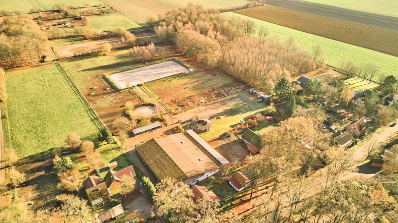 Paardenpension in Nedersaksen – gelegen in Hanstedt – te koop! Professionele faciliteiten voor de sport en comfortabel wonen voor het gezin! Objectbeschrijving: Deze goed onderhouden paardenpension in Hanstedt-Allenbostel biedt op een ca. 28.959 m² groot terrein ideale voorwaarden voor de professionele sport en het hele paardenfamilie. Het hoofdhuis uit 1982 beschikt over ongeveer 128 m² woonoppervlak, is gebouwd in prefab-bouw en voorzien van kunststof ramen met dubbele beglazing. In 2019 is het dak gerenoveerd, in 2023 zijn de badkamer en de keuken op de begane grond gemoderniseerd. Het gebouw heeft geen kelder; het zadeldak, de gevel en de tussenwanden zijn geïsoleerd. Het woonoppervlak wordt aangevuld door een te renoveren gastenverblijf uit 1900 van circa 60 m², eveneens met dubbele beglazing, betegelde en PVC-vloeren. De paardenstallen omvatten onderkomens voor in totaal 23 paarden. Direct grenzend aan de rijhal bevinden zich 13 boxen van het merk Röwer & Rüb met scharnierende fronten, twee poetsplaatsen met rubbermatten, een wasplaats en een zadelkamer. Daarnaast zijn er 10 moderne buitenboxen van het merk Drenoflex uit 2019. De rijhal uit 1982 meet 20 x 40 meter, is uitgerust met een Fairground-bodem, beschikt over een sproeisysteem en LED-verlichting. Aangebouwd is een gezellige ruiterhut (ca. 60 m²) met terras, houtkachel en een kleine keukenhoek, gebouwd in 1991. Voor training zijn er een zandrijbaan (35 x 75 m, 2019), een springweide op gras (35 x 75 m, 2019), een menwagen (voor 4 paarden, 2019) en een longeercirkel met een diameter van 25 m (2019). Het aanbod wordt aangevuld met een nieuwe hooilager, een machineberging, parkeerplaatsen voor bezoekers, vijf zandpaddocks (waarvan twee voor hengsten) en weilanden direct bij de boerderij. De paardenpension combineert comfortabel wonen met professionele omstandigheden voor paardenhouderij op een goed onderhouden terrein en biedt daarmee zowel voor particuliere paardenbezitters als voor commerciële doeleinden ideale voorwaarden. Uitrusting: Woonhuis: - Bouwjaar: 1982 (indeling in galerij) - Woonoppervlak: ca. 128,92 m² - Verwarming: elektriciteit, nachtspeicherovens (houtkachel aangeschaft, niet geïnstalleerd) - Bouwstijl: prefab-huis - Ramen: kunststof, dubbele beglazing - Dak: zadeldak, geïsoleerd - Renovaties: 2019 dakrenovatie, 2023 badkamer op de begane grond Gastenverblijf: - Bouwjaar: 1900 (geen plattegronden beschikbaar) - Woonoppervlak: ca. 60 m² - Verwarming: nachtspeicherovens - Ramen: kunststof, dubbele beglazing - Staat: dringend te renoveren Stal bij de rijhal: - Bouwjaar: 1982 - Boxen: 13 (Röwer & Rüb, scharnierende fronten voor machinale mestafvoer) - Putzplaatsen met rubbermatten, solarium - Wasplaats met warm water - 2 zadelkamers - 1 wasruimte voor paardendekens, gasten-wc met douche Buitenboxen: - Bouwjaar: 2019 - Paardenboxen: 10, 1 zadelkamer - Fabrikant: Drenoflex Rijhal: - Bouwjaar: 1982 - Afmetingen: 20 x 40 meter - Bodem: Fairground - Sproeisysteem aanwezig - Aansluiting met stalgang - Ruiterhut met terras en uitzicht op de rijhal, aangebouwd in 1991 (ca. 60 m², houtkachel, kleine keukenhoek) Reitbaan (zand): - Bouwjaar: 2019 - Afmetingen: 35 x 75 meter - Bodem: Fairground, gedraineerd - Omheining met heg Reitbaan (gras): - Bouwjaar: 2019 - Afmetingen: 35 x 75 meter - Hoogwaardige houten omheining aanwezig Menwagen: - Bouwjaar: 2019 - Aantal paarden: 4 Longeercirkel: - Bouwjaar: 2019 - Diameter: 25 meter - Bodem: Fairground, gedraineerd - Omheining aanwezig Hooilager: - Bouwjaar: 2019 - Afmetingen: 10 x 25 meter - Bodem: Beton Overige: - Machineberging - Mestafvoer via container - 5 zandpaddocks (waarvan 2 voor hengsten) en weilanden bij de boerderij (houten omheining) Locatie: Allenbostel is een dorp in de gemeente Hanstedt, gelegen in de Samtgemeinde Bevensen-Ebstorf in de Nedersaksische Landkreis Uelzen. Ondanks de landelijke ligging biedt het dorp een goede regionale verbinding. Via goed bereikbare snelwegen zijn Hamburg, Hannover en Braunschweig snel bereikbaar. De luchthaven Hannover-Langenhagen ligt op ongeveer een uur rijden en biedt uitgebreide nationale en internationale vluchten. Hanstedt-Allenbostel biedt een rustige, dorpsgebonden levenskwaliteit met een goede basisvoorziening in de omgeving. In de omliggende plaatsen, vooral Hanstedt, Ebstorf en Uelzen, zijn diverse supermarkten, bakkerijen, slagerijen en andere detailhandel en diensten beschikbaar. Grotere winkelcentra, gespecialiseerde winkels en een gevarieerd horeca-aanbod bevinden zich in de Kreisstadt Uelzen, die snel bereikbaar is. Gezinnen profiteren van een goed ontwikkeld onderwijs- en opvangaanbod. Kinderdagverblijven en basisscholen zijn in de nabije gemeenten goed bereikbaar. Voortgezet onderwijs zoals middelbare scholen, gymnasia en beroepsopleidingen zijn in Uelzen en Ebstorf te vinden en via schoolbusverbindingen goed bereikbaar. De medische zorg is eveneens verzekerd, met huisartsen, tandartsen en apotheken in de omliggende dorpen en in Uelzen. Daar zijn ook specialisten, fysiotherapie en het Helios Klinikum Uelzen voor uitgebreide medische zorg. Het leven in Hanstedt-Allenbostel wordt gekenmerkt door rust, natuur en een actieve gemeenschapszin. Verenigingen, brandweerkorpsen en dorpsgemeenschappen zorgen voor een levendige samenleving. De landelijke omgeving biedt talrijke mogelijkheden voor recreatie zoals fietsen, paardrijden en wandelen in de natuur. Energiebewijs: Belangrijkste energiebron: elektriciteit Verbruiksspecificatie Eindenergiebehoefte: 180,05 kWh/(m²*a) Energieprestatieklasse: F Bouwjaar volgens energieprestatiecertificaat: 1982 Aanvullende informatie: Ongeoorloofd betreden van de paardenpension buiten bezichtigingen met de makelaar Fetter Immobilien wordt door de eigenaren niet gewenst en verboden! Bij notariële akte wordt een commissie van 3,57% van de koopprijs inclusief btw in rekening gebracht, te betalen bij het sluiten van de notariële koopovereenkomst. Een gedetailleerde brochure