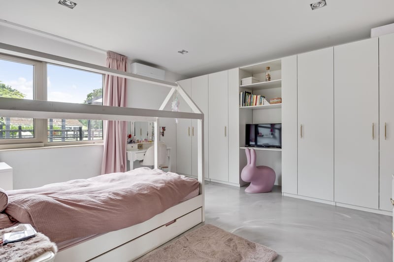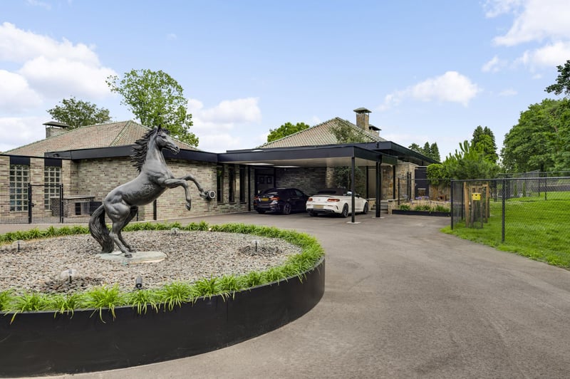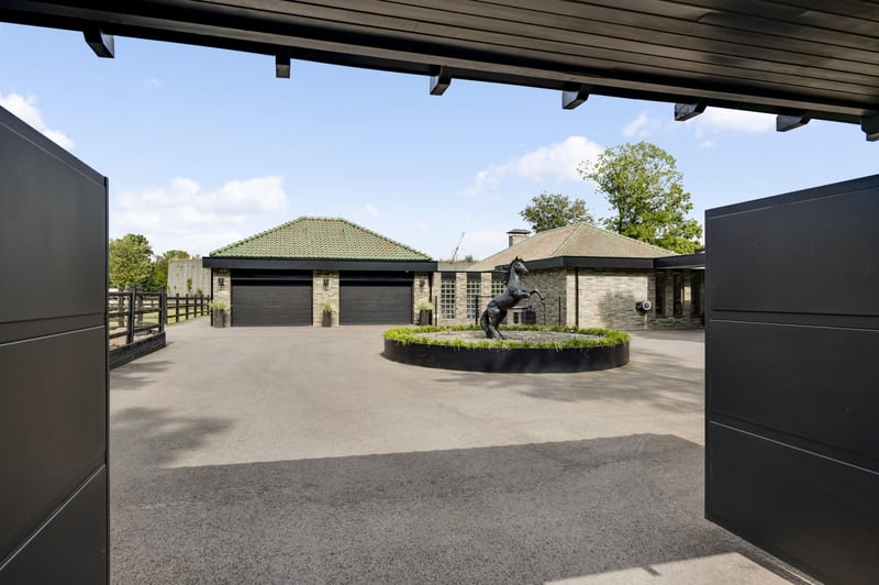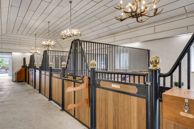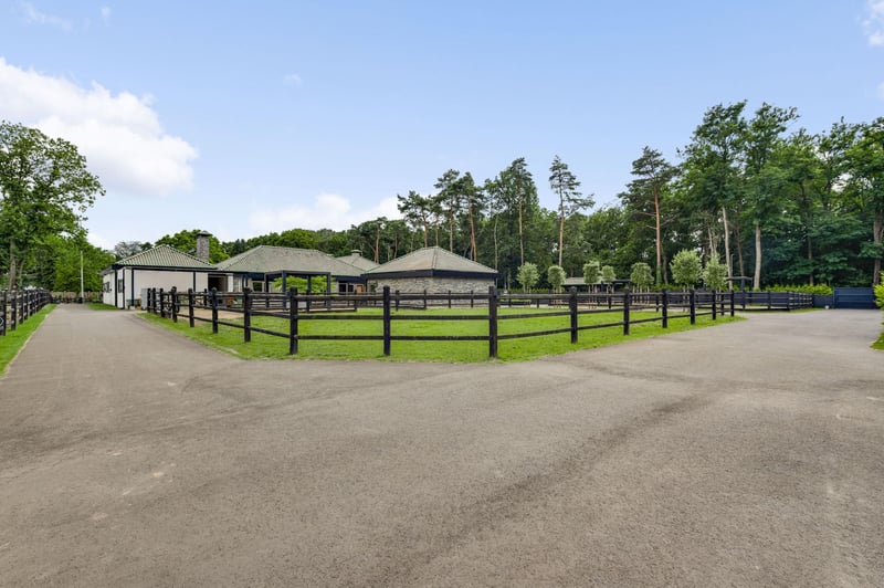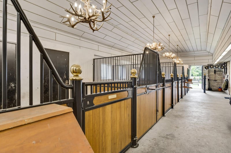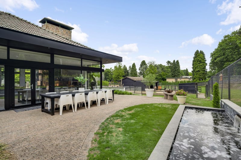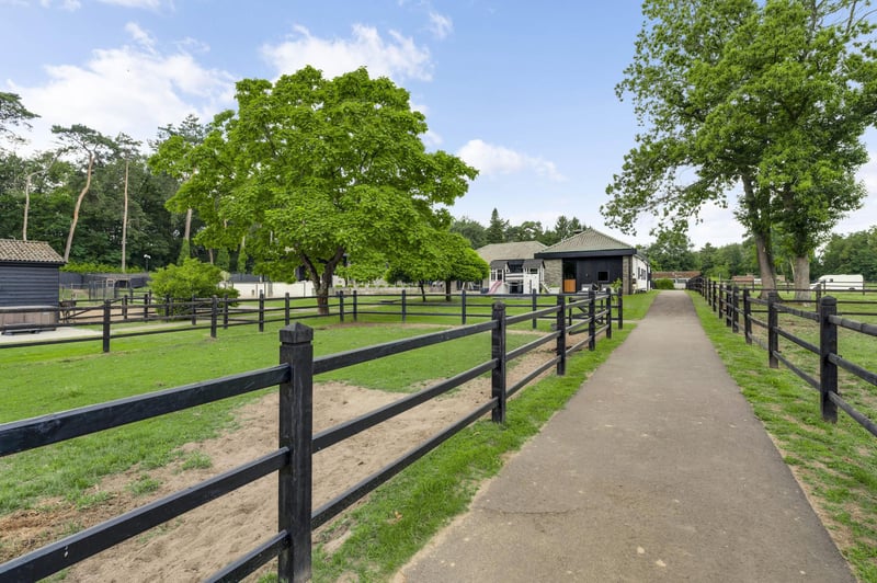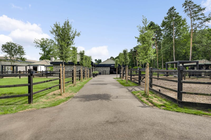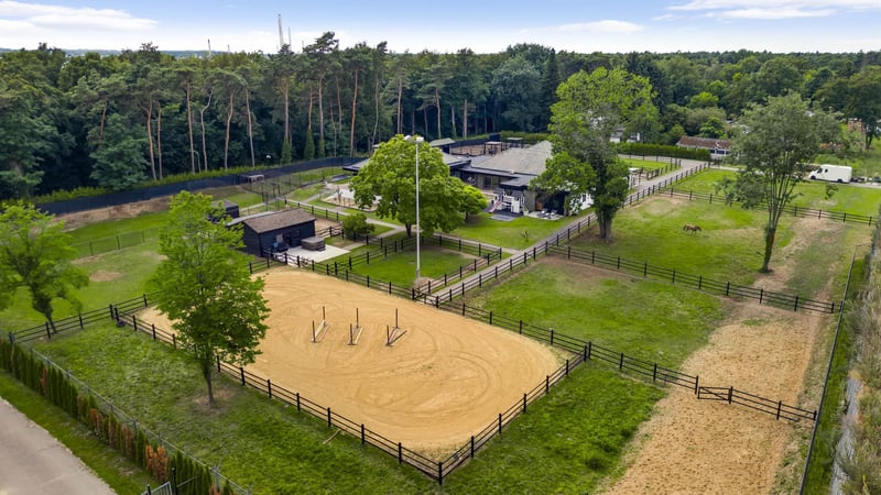 Stately villa with charming guesthouse and horse facilities on the edge of De Meinweg National Park. In a breathtaking location, adjacent to De Meinweg National Park and a stone’s throw from De Herkenbosche Golf Course, this exclusive and fully modernized villa is situated on a spacious plot of no less than 11,171 m². A unique living experience where luxury, comfort, and tranquility come together with the outdoors. Thanks to the extensive horse facilities, including a lighted riding arena, 6 luxurious horse stalls, tack room, wash area, and several surrounding pastures, this is a dream location for horse lovers or offers plenty of space for other uses such as an indoor swimming pool or wellness center. An impressive first impression. You enter the property through the stately entrance gate with intercom. You can park your car in style under the double carport or in the indoor double garage. The covered entrance leads to the spacious reception hall, a fitting entrance for this impressive villa. LAYOUT GROUND FLOOR – LIVING IN GRAND STYLE AND COMFORT The south wing of the house features a spacious living room with large windows and a cozy fireplace. The modern open kitchen (2020) forms the heart of this wing, complete with high-quality built-in appliances. Adjacent to this is a multifunctional room, ideal as a home office, playroom, or library. The east wing is fully furnished as sleeping quarters. It contains five bedrooms, including a spacious master bedroom with its own dressing room, luxurious bathroom, and direct access to a covered terrace overlooking the garden. The other four bedrooms share two stylish bathrooms, each equipped with a bathtub, walk-in shower, double sink, and wall-mounted toilet. A unique feature of this property is the lounge bar with gym, which has direct access to the garden and the horse stables. Non-riders can easily transform this space into a wellness area, indoor swimming pool, or studio. BASEMENT & ATTIC – PRACTICAL AND VERSATILE The basement consists of two separate cellar rooms, one as a storage cellar, accessible from the kitchen, and a second with the technical installations. In addition, the house has three attics, ideal for storage. OUTDOOR LIVING IN STYLE In the beautifully landscaped garden, you will find a charming guest house, complete with kitchen, toilet, and double shower room, perfect for guests, au pairs, or informal caregivers. In addition to the lighted riding arena, animal enclosures, and outdoor stable, the grounds exude freedom, nature, and privacy. This is outdoor living at its finest. SPECIAL FEATURES – Located near a nature reserve and a luxury golf resort – Spacious living area with high-quality finishes – Completely modernized in 2020, including kitchen and 3 bathrooms – Flat roofs and fascia boards renewed in 2024 – Aluminum and plastic window frames – Energy label C – Air conditioning in all bedrooms – Hot air heating throughout the house – Double indoor garage and carport Excellent accessibility: 10 minutes to the A73, 15 minutes to the A2 A rare combination of luxurious living, natural tranquility, and professional horse facilities. This villa is a must-see.