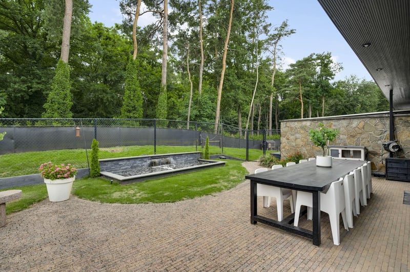 Elegante Villa mit charmantem Gästehaus und Pferdeanlagen am Rande des Nationalparks „De Meinweg“. In einer atemberaubenden Lage, angrenzend an den Nationalpark „De Meinweg“ und nur wenige Gehminuten vom Golfplatz „De Herkenbosche“ entfernt, befindet sich diese exklusive und vollständig modernisierte Villa auf einem großzügigen Grundstück von beeindruckenden 11.171 m². Ein einzigartiges Wohnerlebnis, bei dem Luxus, Komfort und Ruhe mit dem Leben im Freien harmonieren. Dank der umfangreichen Pferdeanlagen, darunter eine beleuchtete Reitbahn, sechs luxuriöse Pferdeställe, Sattelkammer, Waschplatz und mehrere Weiden ringsum, ist dies ein Traumort für Pferdeliebhaber oder bietet viel Raum für andere Nutzungsmöglichkeiten wie ein Hallenbad oder Wellnessbereich. Ein beeindruckender erster Eindruck. Über das elegante Tor mit Gegensprechanlage betreten Sie das Anwesen. Ihren Wagen parken Sie königlich unter dem Doppelcarport oder in der integrierten Doppelgarage. Über den überdachten Eingangsbereich gelangen Sie in die großzügige Empfangshalle – ein würdiger Eingangsbereich für diese großzügige Villa. AUFTEILUNG Erdgeschoss – Wohnen mit Grandeur und Komfort Die Südflügel des Hauses beherbergen ein geräumiges Wohnzimmer mit großen Fenstern und einem gemütlichen Kamin. Die moderne offene Küche (2020) bildet das Herz dieses Flügels, ausgestattet mit hochwertigen Einbaugeräten. Angrenzend befindet sich ein multifunktionaler Raum, ideal als Home-Office, Spielzimmer oder Bibliothek. Der Ostflügel ist vollständig als Schlafbereich eingerichtet. Hier befinden sich fünf Schlafzimmer, darunter ein großzügiges Hauptschlafzimmer mit Ankleidezimmer, luxuriösem Badezimmer und direktem Zugang zu einer überdachten Terrasse mit Blick auf den Garten. Die vier weiteren Schlafzimmer teilen sich zwei stilvolle Badezimmer, jeweils ausgestattet mit Badewanne, begehbarer Dusche, Doppelwaschbecken und Wand-WC. Ein besonderes Highlight ist die Loungebar mit Sportraum, die direkten Zugang zum Garten und zu den Pferdeställen bietet. Nicht-Reiter können diesen Raum problemlos in einen Wellnessbereich, ein Hallenbad oder Atelier umwandeln. KELLER & DACHGESCHOSS – PRAKTISCH UND VIELSEITIG Der Keller besteht aus zwei separaten Kellerräumen, einem Vorratskeller, der vom Küchenbereich aus zugänglich ist, sowie einem Technikraum. Zudem verfügt das Haus über drei Dachböden, ideal zur Lagerung. OUTDOOR-LIVING IN STIL Im schön angelegten Garten finden Sie ein charmantes Gästehaus, komplett mit Küche, Toilette und Doppel-Duschraum, perfekt für Gäste, Au-pairs oder Pflegepersonal. Neben der beleuchteten Reitbahn, den Tiergehegen und dem Außenstall strahlt das Gelände Freiheit, Natur und Privatsphäre aus. Hier erleben Sie das Leben im Freien auf höchstem Niveau. Besonderheiten – Lage in Naturschutzgebiet und in der Nähe eines Luxushotels – Großzügige Wohnfläche mit hochwertiger Ausstattung – Vollständig modernisiert im Jahr 2020, inklusive Küche und drei Bäder – Flachdächer und Traufen im Jahr 2024 erneuert – Aluminium- und Kunststofffenster – Energieeffizienzklasse C – Klimaanlage in allen Schlafzimmern – Gasheizung im ganzen Haus – Doppelgarage und Carport – Hervorragende Anbindung: 10 Minuten bis zur A73, 15 Minuten bis zur A2 Eine seltene Kombination aus luxuriösem Wohnen, naturnaher Ruhe und professionellen Pferdeanlagen. Diese Villa müssen Sie selbst erleben.
