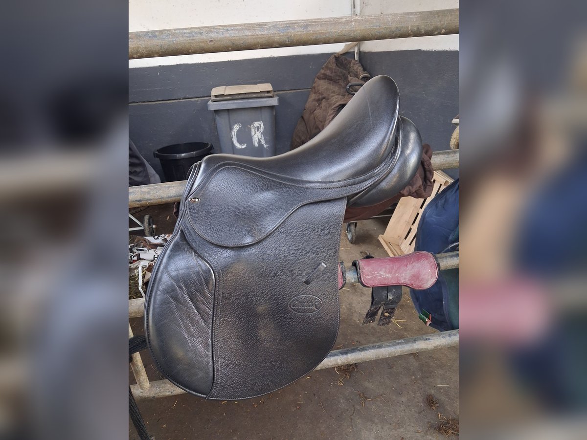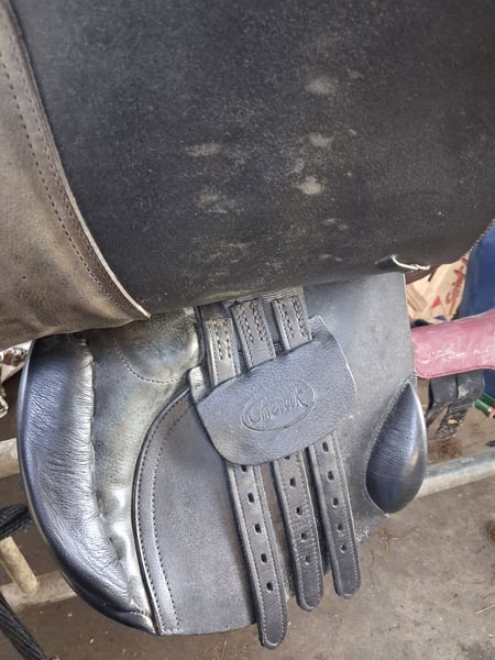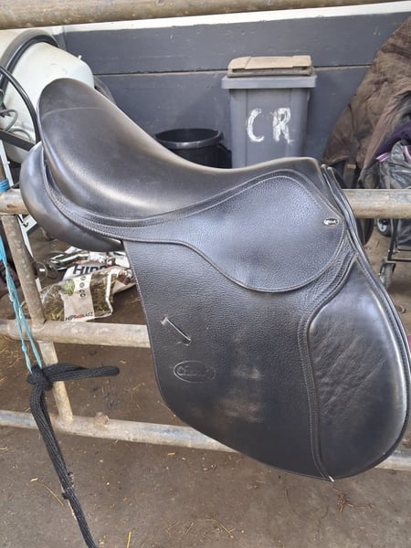 Selle mixte noir 16,5 marque chetak , bien entretenue et en bon état. Je la vend car elle ne convient pas a mon poney