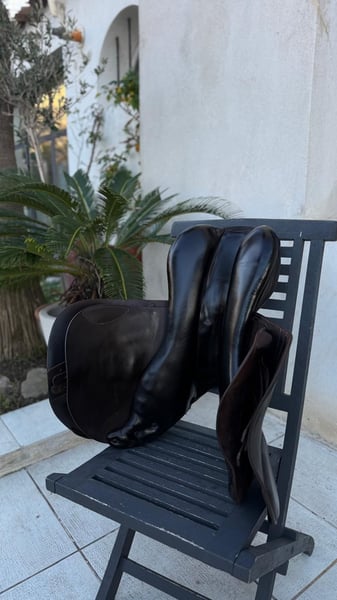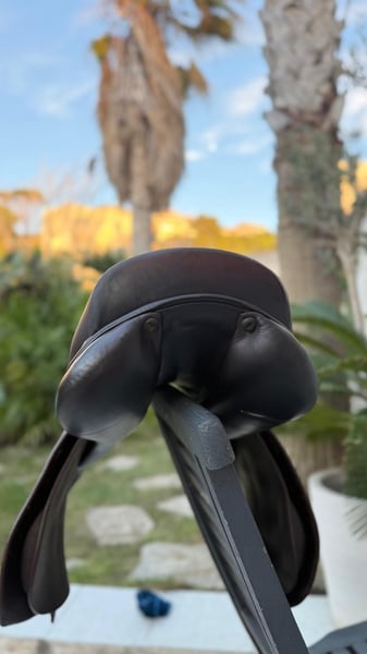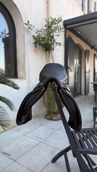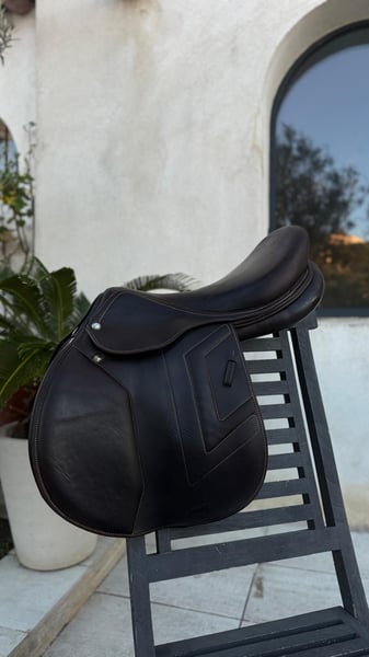Selle d'obstacle Renaissance F2S (2022) - État Exceptionnel Vends selle de sport Renaissance (Prestige Italia), modèle F2S (siège semi creux), achetée neuve en octobre 2022. Selle haut de gamme alliant le savoir-faire italien et la précision française, offrant un contact optimal avec le cheval. Modèle : F2S Taille de siège : 18 pouces Arcade : 32 (d'origine, non modifiée) Quartiers : LC (Longs – idéal pour cavalier avec grandes jambes ou pour plus de stabilité) Options : Panneaux en mousse (Contact proche et précis), très bon dégagement du garrot, convient à beaucoup de dos Taquets : Oui, idéal pour une jambe libre et précise Couleur : Marron foncé État : Très bon état général. Toujours très bien entretenue entretenue avec soin avec les produits de la marque. Cuir souple et sain. À noter : légères traces de frottements en bas des quartiers dues aux étrivières plates (visibles sur photos), esthétiques uniquement, n'altérant en rien la qualité du cuir ou la longévité de la selle. Vendue avec sa housse de protection d'origine Renaissance. Aucune réparation à prévoir, prête à travailler. Selle très confortable, offrant un close contact optimal, une bonne fixité de jambe et permettant de sortir de son siège facilement et de s'y rassoir rapidement et un équilibre parfait pour le saut d'obstacles. Siège confortable offrant plus d’espace et de liberté de mouvement que la F2 classique, tout en gardant un très bon maintien. Prix : 2 900€ Prix neuf : 5 300€ Photos supplémentaires et infos complémentaires sur demande.