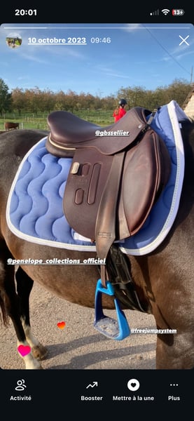 Je vends ma selle GBS de 2023 très peu utilisée car pas adapté à mes chevaux. Siège de 17 pouces et semi-creux.