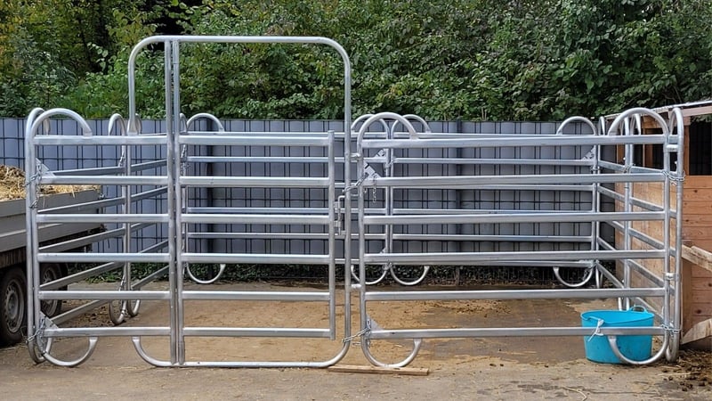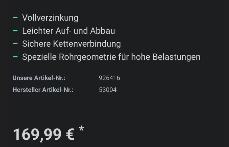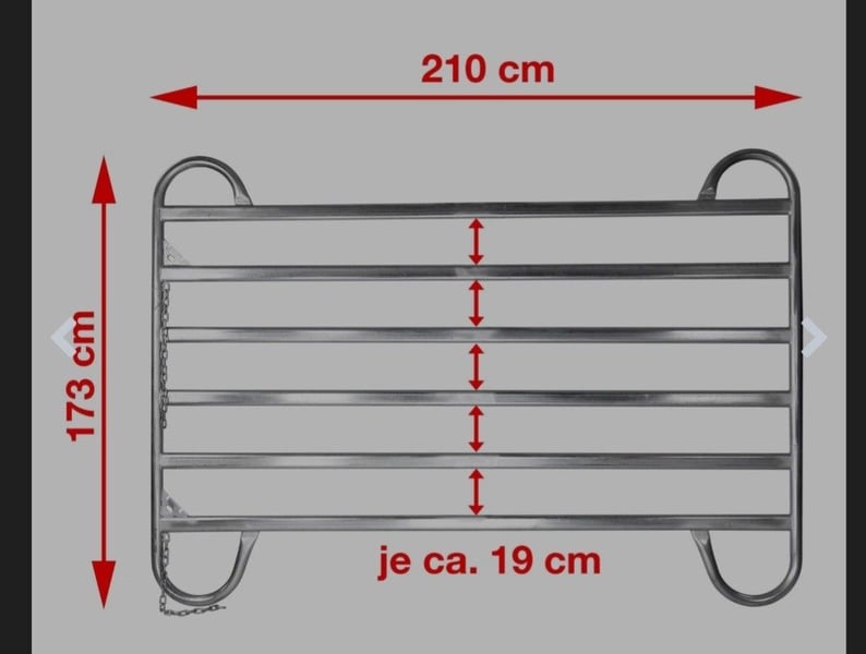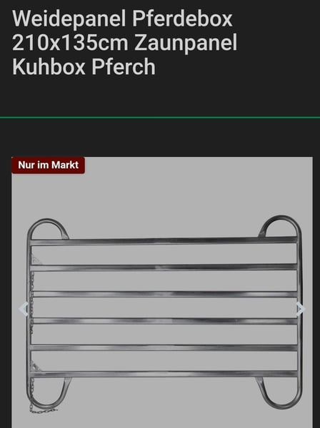 Zum Verkauf steht eine 2-Monate-alte Weidebox / Panelbox / Rehabox / Pferdebox / mobiler Auslauf in den Maßen 4,20 breit x 4,20 lang x 1,73 hoch Ich hatte die Box für ein Rehapferd zum stundenweise herausstellen. Sie besteht aus: 7x Panel: 2,10 breit x 1,73 cm hoch / Zwischenräume 19 cm anzuschauen unter dem Link: https://www.stabilo-fachmarkt.de/weidepanel-pferdebox-zaunpanel-kuhbox-pferch-weidepaneel_924102_37931/ + 1x Panel mit Türe: 2,10 breit x 2,20 hoch/1,73 hoch anzuschauen unter dem Link: https://www.stabilo-fachmarkt.de/weidepanel-pferdebox-zaunpanel-torpanel-box-weidepaneel/a-924542/ + 20 Stück Verbindungsklemmen (16 neu / 4 gebraucht) Neupreis betrug: 7x Panels je 169,99 Euro 1x Panel mit Türe/Tor je 239,99 Euro 20 Stück Verbindungsklemmen passend dafür 39,99 Euro Komplettwert von 1.462 Euro - Vollverzinkung - spezielle Rohrgeometrie für hohe Belastungen - leichter Auf- und Abbau - benötigt wenig Platz bei der Lagerung - sichere Kettenverbindung - spezielle Eck-Rohrkonstruktion zum Schutz der Tiere - Füße in Kufenform für hohe Standsicherheit - mit 2 Ketten zur sicheren Verbindung untereinander Die Ware kann in 79336 Herbolzheim abgeholt werden.