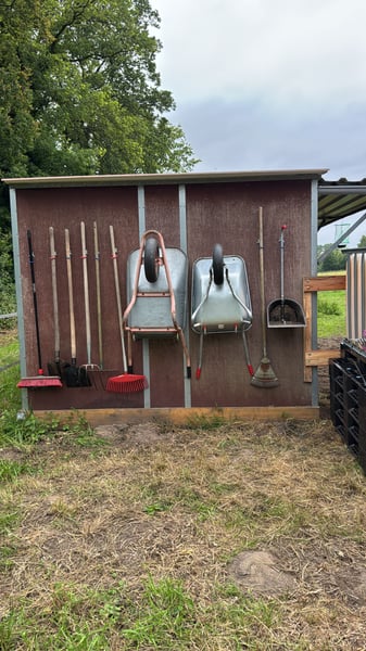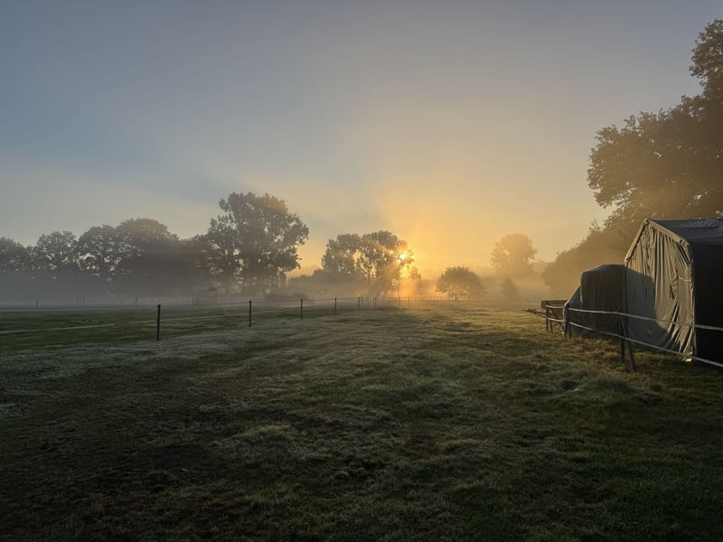 Offenstall in ruhiger Lage mit Trail in Klein Nordende Wir suchen Menschen, die sich mit und für ihre Pferde Raum zur Entwicklung und zur Ruhe wünschen. Auf unserem großzügigen Weideland (ca. 6 ha) wird eine neue Herde entstehen, in der die Pferde gesehen werden und das Pferd Pferd sein darf. Es ist in mehrere Wiesenstücke unterteilt und umrahmt von einem Reitweg. Ein ca. 900m langer Trail führt durch ein kleines Wäldchen und ist mit Salz- und Minerallecksteinen versehen. Mehrere Weidehütten bieten Wetterschutz und können im Notfall als Krankenbox genutzt werden. Im Moment haben die Pferde 24/7 Rauhfutter zur Verfügung. Im Sommer stehen die Pferde 24/7 auf Gras und wir stecken die Wiese weiter, damit das Gras rationiert wird. Für die Zeit, in der Heu gefüttert wird, planen wir eine Limitierung des Rauhfutters, so dass Fressen und Bewegung in Balance sind. Für alle Ausreitfans: Von uns kommt man ins Liether Moor, zur Liether Kalkgrube, in den Liether Wald, aber auch nach Heidgraben zu „Langes Tannen“. Derzeit haben wir einen Wiesenreitplatz, den wir noch mit Sand auffüllen wollen. Zudem wird es einen kleinen Trailplatz geben. Unsere Zaunanlage ist neu. Wir freuen uns auf achtsame Menschen mit positiver Energie, die gerne mal ein wenig mit anpacken und für Energiearbeit offen sind. Wichtig: Wir sind voll motorisiert und haben alles, was das Herz eines Hobby-Landwirt höher schlagen lässt. D.h. die Wiesen werden gepflegt und das Rauhfutter wird mit dem Trecker in die Raufen gelegt. Trotzdem bieten wir keinen Rundum-Service. D.h. jeder sorgt dafür, dass die Anlage sauber und ordentlich bleibt, äppelt regelmäßig ab, füllt Wasser auf und achtet auf alle Pferde, wie es jeder andere auch tut. Dafür hat dein Pferd bei uns viel Raum. Deine Sachen kannst du in einem der beiden Bauwagen unterbringen, wo sich Sattelhalter befinden und dein Schrank reingestellt werden kann. Deckenhalter befinden sich im Zelt.