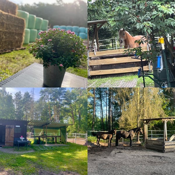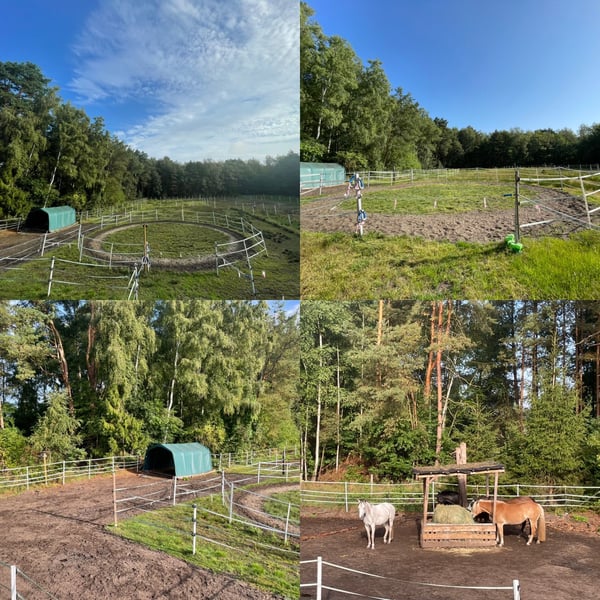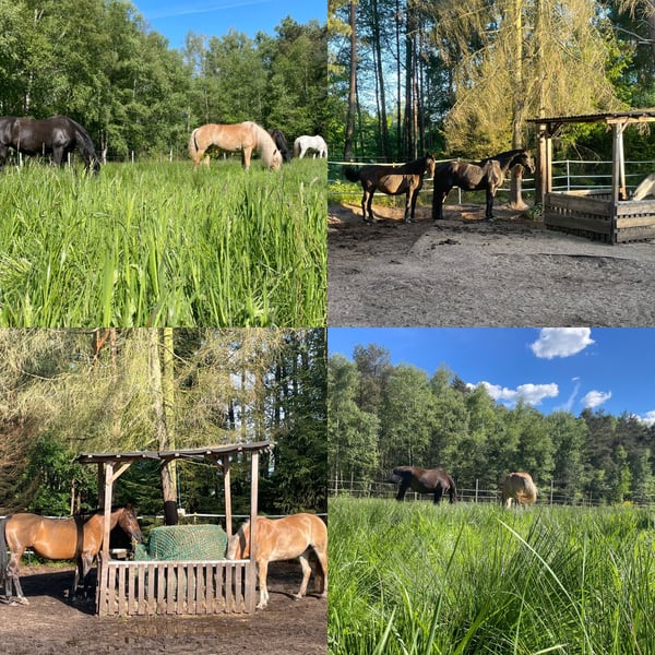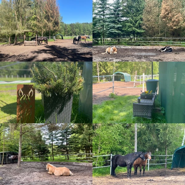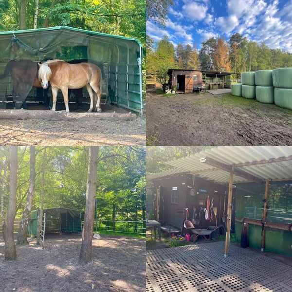 In unserem kleinen, privaten, rustikalen Offenstall sind 1-2 Plätze für robuste Stute(n) oder ältere(n))/nicht aufspringende(n) Wallach(e) in Vollpension frei. Die Gruppe besteht derzeit aus 3 Stuten in allen Altersklassen. Wer gerne in Ruhe seine Freizeit mit seinem Pferd verbringt, ist bei uns genau richtig. Wir füttern 24/7 Heulage aus 2 überdachten Raufen. In der Saison stundenweise Weidegang je nach Bewuchs. Es gibt einen Schuppen mit Schränken für Equipment und Futter, Anbindeplätze, einen Longierzirkel und kleinen Reitplatz auf Naturboden (nicht ganzjährig benutzbar), endloses Ausreitgelände, Pferdedusche, frostsichere Tränke, Not(paddock)box, 2 Unterstände (3. in Planung; im Winter mit Stroh eingestreut), Laufwege und um die Raufen befestigt, Kameraüberwachung von Hof und Paddock. Wir äppeln 2x täglich ab und füttern 1x täglich KF (muss vom Pferdebesitzer gestellt werden). Es fallen keine Dienste für Pferdebesitzer an. Wir sind eine liebe Stallgemeinschaft und suchen für langfristig ein nettes, robustes Pferd-Reiter-Paar. Interesse? Dann melde dich gern per PN. Vollpension 225,-€/Monat Stm. 1,60m