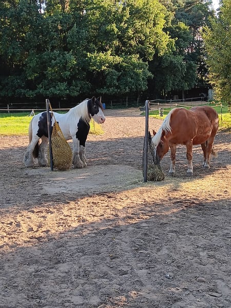 Wir haben einen Paddocktrail in 21357 Barum mit etwa 1km Gängen die zwischen 3m und 10m breit sind. Durch die vielen, auf dem Trail verteilten Heufutterstellen bewegen sich unsere Pferde sehr viel, meist im Schlenderschritt. Im Moment stehen 6 Pferde bei uns – 1 QuarterHorse Stute (20 Jahre), 1 Kaltblut-Hafimix-Stute (20J.), 1 Haflingerstute (12jahre) und 3 Wallache (Noriker, Hannoveraner, Criollo, ) im Alter von 5 bis 29Jahre. Es gibt einen Unterstand, eine Notbox, einen Bauwagen für Halfter, Putzzeug usw. und einen Reitplatz (20m x40m). Wasser bekommen wir aus einem Schlauch (funktioniert auch im Winter- falls wir mal Frost haben Die Pferde sind etwa von Mai bis Oktober auf dem Gras und bekommen es portionsweise abgesteckt. Wir sind eine freundliche Stallgemeinschaft. Jeder zahlt Heu und Kraftfutter nach Verbrauch (jeder bekommt das Kraftfutter, das der Besitzer möchte), 110€ im Monat pro Pferd zur Deckung der laufenden Kosten und macht zwei Dienste in der Woche. Ein Dienst ist entweder abends oder morgens füttern, Wasser machen, Heu verteilen und abäppeln. Ruf doch einfach mal an, die Handynummer ist 0176 431 44 727. Liebe Grüße Christine