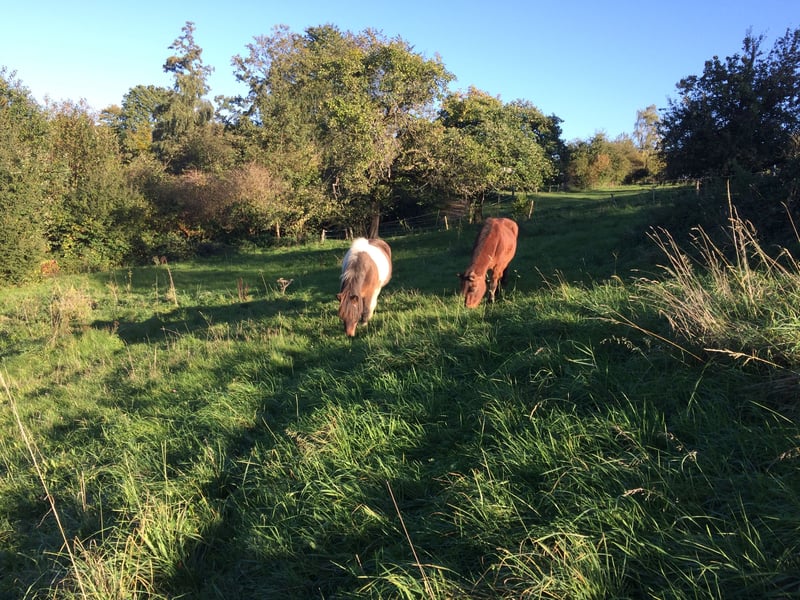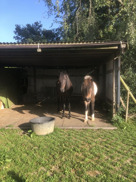 Wir bieten dir für dein Pony oder Kleinpferd bis 1,50m einen Platz bei unseren beiden älteren Rentnerponys (Wallache) in ruhiger Offenstallgruppe mitten im Grünen. Im Sommer geht es bis 24/7 auf die Weiden mit schattenspendenden Bäumen, Zugang zum kühlen Unterstand und natürlich Wasser. Im Winter können sich die Ponys auf mehr als 1.000qm frei bewegen und haben in Stall, Paddock und Trail verschiedene Untergründe. Zu fressen bekommen sie Heu oder Heulage ad libidum und bis zu zweimal täglich Zusatzfutter. Ein Mineralleckstein steht zur freien Verfügung. Der Stall ist von einem weitläufigen Ausreitgelände umgeben. Den Bewegungsplatz und eine ebene Weide kannst du für Übungen nutzen. Ein richtiger Reitplatz befindet sich 10 Minuten zu Pferd entfernt. In der Scheune neben dem Anbindeplatz kannst du Ausrüstung und Futtertonnen unterbringen. Wasser, Strom und eine Komposttoilette sind vorhanden. Liebe Hunde und Kinder sind willkommen. Da die Ponys bei uns hinterm Haus stehen, haben wir sie immer im Blick und können auf individuelle Bedürfnisse eingehen. Daher wäre auch eine komplette Versorgung deines Ponys möglich, wenn du z.B. weiter weg wohnst oder wenig Zeit hast. Wenn du Fragen hast, schreibe uns gerne!