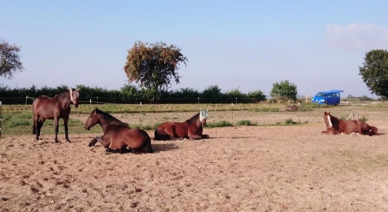 Offenstall-/Weideplatz in kleiner harmonischer Herde frei Wir bieten einen liebevoll geführten Weide- und Offenstallplatz in kleiner, ruhiger Herde an. Aktuell besteht unsere Gruppe aus 3 Pferden (1 Stute, 2 Wallache) und wir wünschen uns ein gut sozialisiertes Pferd, das in die Gemeinschaft passt. Die Pferde leben ganzjährig draußen in artgerechter Offenstallhaltung mit viel Bewegung und Sozialkontakt. Das bieten wir: • Kleine, harmonische Herde • Große Sommerweide mit Paddock und Späneplatz zum Liegen • Winterweide für die kalte Jahreszeit • Heuraufe und Wasserwagen vorhanden • Zwei Container als Unterstand (im Winter mit Stroh eingestreut) • Fachmännisch bewirtschaftete und sicher eingezäunte Weiden • Weiden liegen direkt am Dorf, daher gut erreichbar • Sehr schönes Ausreitgelände direkt vor der Tür Weitere Möglichkeiten: Der zugehörige Hof ist ca. 10 Minuten zu Fuß entfernt und bietet: • Platz für Schrank und Futtertonnen • Waschplatz für die Pferde • Reitmöglichkeiten auf einem Reiterhof mit Halle in nur ca. 10 Minuten Anhängerfahrt (Danmacker Hof, Kosten für Anlagennutzung fallen an) Organisation & Gemeinschaft: Unsere Haltung wird artgerecht und fachmännisch geführt. Wir pflegen einen freundlichen, hilfsbereiten Umgang miteinander. • Im Sommer hilft jeder gelegentlich beim Abäppeln des Paddocks, wenn er vor Ort ist • Wasser wird bei Anwesenheit aufgefüllt • Keine festen verpflichtenden Dienste • Zweimal jährlich ziehen die Pferde gemeinsam auf Sommer- bzw. Winterweide – dabei freuen wir uns über helfende Hände Bei Interesse oder Fragen freuen wir uns über eine Nachricht mit ein paar Infos zu deinem Pferd.