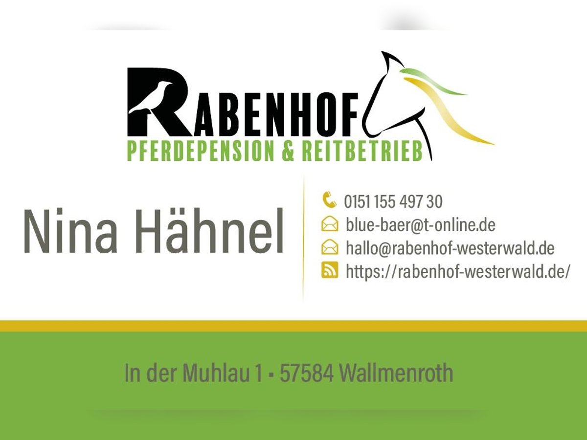 Wir haben noch wenige Boxen und Offenstallplätze frei. Wir haben ein wenig erweitert, daher ist nun wieder Platz. Im Sommer stehen die Pferde 24 Stunden auf unserem angrenzenden Weideland. Im Winter gibt es ad libitum Heu. Die Pferde im Offenstall werden über Heuraufen mit Rundballen versorgt. Die Boxenpferde nachts mit Heu (Heulage zubuchbar) über Heuraufen in den Boxen, tagsüber auf der Paddockanlage via Heuraufen mit Rundballen. Reithalle (mit neuem Sand), Reitplatz mit Flutlicht, Sattelkammer, Futterkammer, Reiterstübchen mit Blick in die Halle und eine tolle Stallgemeinschaft erwarten euch. Der Preis bezieht sich auf Vollpension. Es wird gemistet und Heu gefüttert, Die Boxenpferde werden morgens auf die Paddockanlage und abends wieder reingebracht. Weitere Leistungen zubuchbar. Besucht uns gerne auf Rabenhof-Westerwald.de oder kommt vorbei und macht euch einen Eindruck von unserer Anlage. Erst kommt das Pferd, dann der Rest. Vollpension 390 € Bei Fragen einfach melden, gerne per WhatsApp 015115549730