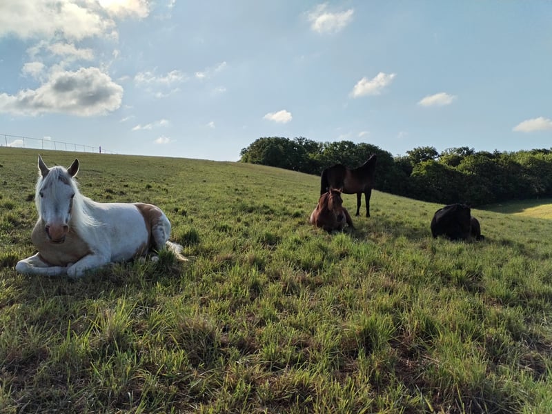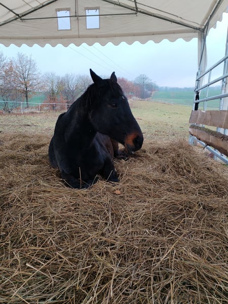 Sie suchen ein neues zu Hause für ihr Pferd? Wohin mit dem Sportpferd oder der Zuchtstute nach Karriereende? Ganz einfach: zu uns. Bei uns kann Ihr Pferd ganz Pferd sein und den ganzen Tag Pferdesachen machen. Als Mitglied einer gemischten Herde hat Ihr Pferd rund um die Uhr Zugang zu Artgenossen, Wasser, Heu/Gras und Mineralien. Die Herde steht ganzjährig auf 7 ha großen Weideflächen mit mehreren Weidezelten. Das Wohlergehen der Pferde wird täglich mehrmals kontrolliert. Hufschmied, Tierarzt oder weitere Serviceleistungen sind nach Absprache möglich. Auf dem Gelände ist ein großer abgegrenzter Platz zum Reiten oder sonstigem Bewegen der Pferde verfügbar. Ausritte ins Gelände sind möglich. In der Nähe (ca. 800 m) befindet sich eine große Reithalle sowie ein Dressurplatz, ein Springplatz und eine Geländestrecke (gesonderte Absprachen erforderlich).
