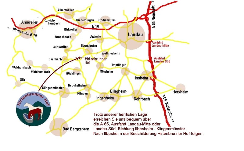 Mitten in herrlichem Ausreitgelände liegt der Hirtenbrunner Hof in der Nähe von Ilbesheim. Hier haben alle Pferde Aussenboxen mit eigenem Paddock zur Verfügung. Wir füttern dreimal täglich Heu und zweimal Kraftfutter. Beheizte Schwimmertränken sorgen auch im Winter dauerhaft für frisches Wasser. Die Sattelkammern bieten ausreichend Platz auch für Westernsättel. Misten kann gegen Aufpreis übernommen werden. Direkt ab Hof führen wunderschöne und gut reitbare Wege in alle Richtungen, Sie haben die Wahl zwischen den Sandwegen des Pfälzer Waldes und den Graswegen durch die Weinberge! Eine offene Reithalle (20x40m) bietet Schutz vor Sonne und Regen und wird zu jeder Jahreszeit gerne genutzt. Willkommen!