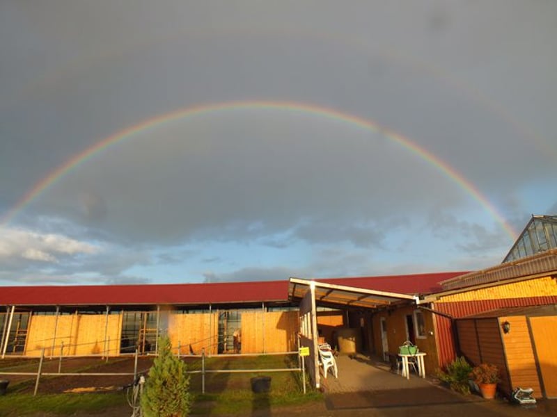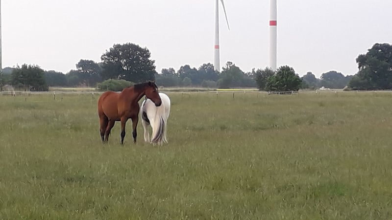 Wir bieten zwei große Boxen mit jeweils angrenzendem Paddock/Auslauf. Der Stall hat eine Halle, einen beleuchteten Reitplatz, die Nutzung des vis á vis gelegenen Turnierplatzes ist bei Vereinsmitgliedschaft möglich, ein Stübchen, Abstell-/Lagerfläche für Zubehör, einen Waschplatz, riesige Sommerweiden (Weidesaison 24/7-Nutzung in gemischter Herde für hinten unbeschlagene Pferde), großes befestigtes Gemeinschaftspaddock für die Winterzeit, eine nette Stallgemeinschaft.