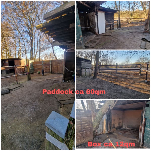 Wir haben drei Stellplätze in Paddockboxen in unserer Haltergemeinschaft frei. Eher für kleinere Pferde oder Ponys geeignet. Doppelbox Dazu gehören zwei Kammern für zB Einstreu oder Utensilien und eine große abschließbare Sattelkammer. Einzelstellplatz mit einer zweiten kleinen Box als Lagermöglichkeit und eine abschließbare Sattelkammer. Tagsüber haben wir auch einen Paddock,der frei genutzt werden kann. Weide steht uns nach dem zweiten Schnitt bis ca Februar zur Verfügung. Einen Stromanschluss haben wir nicht. Jeder hat eine Batterie und/oder Solarpanels. Ein Generator ist vorhanden, falls z.B Hufschmied oder TA Strom brauchen. Wasser für die Pferde bekommen wir von den Nachbarn (via Schlauch,kein Schleppen) Ansonsten gibt es keinen Wasseranschluss. Wir sind ein Selbstversorger Stall und kümmern uns dementsprechend im Team um den Hof. Arbeitseinsätze sind sehr überschaubar und wenig zeitaufwendig. Ein ca 25m x ca 35m Allwetter Sandreitplatz ist vorhanden. Die Eilenriede mit ihren tollen Reitwegen ist nur einen kurzen Weg entfernt. Im Preis enthalten sind-> HEU SATT!!Pacht,Versicherungen, Wasser, Mistentsorgung, Tierseuchenkasse, Instandhaltungskosten etc Das Gelände ist komplett eingezäunt (ca 80% Tierschutzzaun) und Kamera überwacht. Mit den Öffis sind wir super zu erreichen. Die Haltestelle Großer Hillen ist fußläufig erreichbar. Das Gelände wurde erst im September '24 übernommen, nach mehreren Jahren brach liegen. Dementsprechend wird noch weiterhin nach und nach alles optimiert und renoviert. DIE VORPÄCHTERIN HAT NICHTS MEHR MIT DEM HOF ZU TUN! (scheint ne wichtige Info zu sein) Wir freuen uns über neue Pferde mit ihren Menschen :)