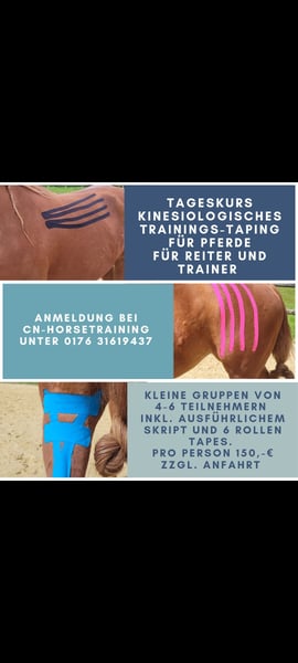 Kursangebot Tageskurs Bewegungsanalyse Du hast Interesse daran einfach mehr über dein Pferd zu erfahren? Du willst das Training mit deinem Pferd optimal gestalten? Kurs bei euch vor Ort mit euren Pferden. Ihr erhaltet Analysebögen. Jedes Pferd wird zusammen analysiert. Was sehen wir? Wo kommt es her? Was kann man verbessern? Was ist schon super? Zusammen erstellen wir Tipps zum Training für jedes Pferd. Anzahl der Teilnehmer 3-6 Preis pro Person 150,- Euro zzgl. Anfahrt. Weitere Angebote: * Osteopathische Behandlung 150,- Euro zzgl. Anfahrt. * Cranio-sacrale-Therapie 70,- Euro zzgl. Anfahrt. * Einzelunterricht Bodenschule/Reitunterricht Pro Einheit circa 45 Minuten auf dem eigenen Pferd berechne ich 45,- Euro zzgl. Anfahrt. * vollständige Analyse inkl. Equipment, Pferd im Stand, Pferd in der Bewegung, an der Longe, unter dem Reiter. Reitunterricht, schriftlicher Trainingsplan. 140,- Euro zzgl. Anfahrt * kurze Sichtung, Kundenerzählung, Trainingsplan 80,- Euro zzgl. Anfahrt * Unterricht, schriftlicher Trainingsplan 95,- Euro zzgl. Anfahrt * tel., Ziele Kd., Fotos Pferd, Trainingsplan 70,- Euro zzgl. Anfahrt * Workshops Es können auch Tageskurse für die Bodenschule, Reiten und vieles mehr für mehrere Teilnehmer am eigenen Reitstall organisiert werden. Gerne komme ich zu Ihnen und Ihrem Pferd, sodass Sie ohne Verladestress trainieren können. Mein Standort ist Bottrop-Kirchhellen. (Unterrichtseinheiten die nicht am Vortag abgesagt wurden, werden entsprechend berechnet.) Osteopathie, Physiotherapie, Horsetraining, Westernreiten, Westerntrainer, Dressurtrainer, TGT Trainer, Reittrainer, Reitlehrer, Pferdegerecht, Pferdefreundlich, Therapeut