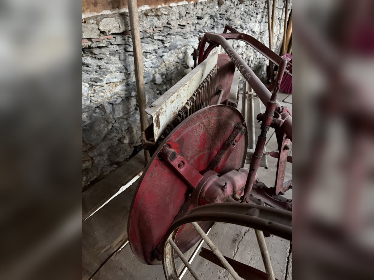 Gut erhaltene Pferdemaschine zum Schwaden. Die Maschine steht in Malans GR