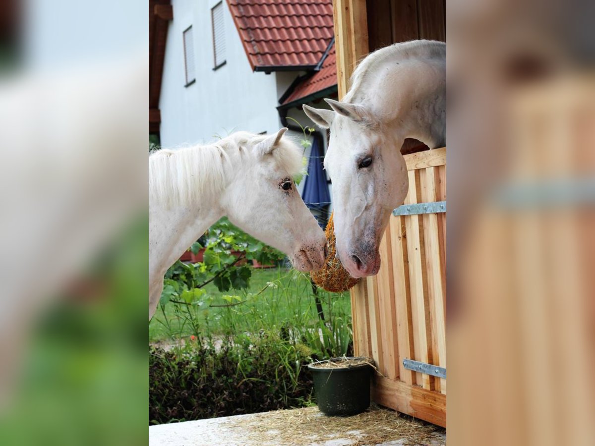 Ausbildung des jungen Pferdes – der Weg vom Züchter zum Verlasspferd: Petra Kronwitter hält beste Kontakte zu den Züchtern und ist mehrmals im Jahr in Vorort, wo sie direkt auf den Weiden die Pferde begutachtet. Diese direkte Zusammenarbeit mit den Züchtern bringt alle positiven Voraussetzungen mit, die ein zukünftiger Pferdebesitzer beim Kauf finden möchte: Drei Eckpfeiler, die ein gutes Pferd ausmachen: 1. Die Züchter kennen über viele Pferdegenerationen die Blutlinien ihrer Pferde und damit verbunden die Eigenschaften, die vererbt werden. 2. Alle Pferde wachsen in einer herrlichen, gesunden Landschaft in einer Herde mit den verschiedenen Altersgruppen auf und erhalten dadurch eine natürliche Sozialisierung. Sie bekommen viel Muskulatur und gute Lungen, wenn sie lernen, sich auf den hügeligen Weiden trittsicher zu bewegen. Wenn sie dann 3-jährig sind, fehlt den jungen Pferden allerdings eine fundierte, korrekte Ausbildung zu verlässlichen Reitpferden. 3. Die übernimmt Petra Kronwitter dann, wenn sie sich vom freundlichen und positiven Charakter der Pferde überzeugt hat. Sie wählt einige aus und holt sie zu sich in ihren Stall in Mainbernheim, wo sie in den nächsten Monaten ausgebildet werden. Petra hat meist schon Anfragen von Kunden und sucht sich die Pferde aus, von denen sie überzeugt ist, dass sie zu den Familien oder Turnierreitern gut passen könnten. So gibt es die sportlichen, die sensibel und leistungsbereit unter dem Reiter sind, genügend Potential in den die Grundgangarten haben, sich geschickt beim Springen anstellen oder mutig im Gelände über Gräben und feste Sprünge gehen. Trotz dieser wunderbaren Rittigkeit sind sie immer klar im Kopf. Diese sensiblen Pferde verlangen nach einem feinfühligen, aber mutigen Reiter, um im Leistungssport oder auf der Jagd ihr Können zu zeigen. Oder es gibt die gutmütigen, gelassenen und braven Pferde, die nach korrekter Ausbildung als Familien- und Freizeitpferd den zukünftigen Besitzern viel Freude machen und den eher vorsichtigen Reitern viel Vertrauen geben. Wenn die Pferde dann entsprechend ausgebildet sind, werden sie oft von Junioren der Reitschule auf Turnieren vorgestellt oder gehen bei Reitjagden mit, so dass die Interessenten wissen, dass das Pferd im Sport erprobt ist, sich verladen lässt und durch seinen guten Charakter ruhig, aber leistungsbereit alles mitmacht.