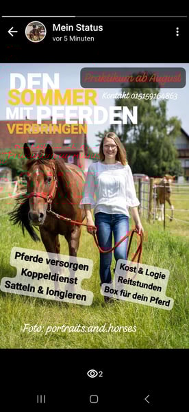 RAKTIKUM as #Groom & #Trainer-Assistant wanted Starting immediately in 78052 Villingen-Schwenningen ✅️ Nice room ✅️ Box for your horse ✅️ Full board Your tasks: Horse care saddling Lunging and why riding Horse care Looking after broodmares ✴️ Small team that has time for you ✴️ Comprehensive insight from breeding, rearing. Breaking in to the finished show horse ✴️ Learn to give riding lessons ✴️ If you don't have your own horse, our horses are available for you to ride. ... Send your application with riding video via WhatsApp to 015159164863 or by e-mail to info@trainstation-reining.com Photos portraits.and.horses Louisa Kaschubowski