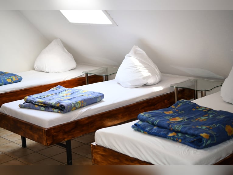 All information at: https://talhof-edertal.de/reiterferien-fur-kinder-und-jugendliche/ Tel. 05621/2682 E-Mail: talhofwellen@web.de During all school vacations, we offer exciting riding vacations for children and young people at the Talhof. The one-week program (Saturday to Saturday) includes accommodation with full board, six riding lessons, as well as other horse-related activities and - depending on the age of the children - intensive supervision by our competent team. For over 40 years, we have been inviting children (aged 8 and over) and young people to the Talhof with our exciting vacation program. You can expect an exciting time with lots of fun and numerous activities around a real farm. Our extensive area in the middle of unspoiled nature, with its numerous horses, cows, pigs, goats, geese, chickens and a variety of other animal inhabitants, offers a perfect environment for discovering, playing and learning. You are sure to have lots of new experiences and make lots of new friends after this week! The most important part of the riding vacation is the numerous activities on and around the Talhof. Daily riding lessons (except on the day of arrival/departure) and the care of the horses and ponies are at the heart of the program. Our experienced riding instructors pay particular attention to teaching you how to handle the horse correctly and safely as a partner. Depending on the weather, we would like to practice with you in the indoor arena and on the beautiful outdoor arena or enjoy nature on a trail ride. You won't be bored after riding either, as we have plenty in store for you with a covered wagon ride, an exciting farm or village rally, a barbecue and an evening around the campfire with bread on a stick. You can also spend your free time as you wish on our large grounds with a soccer pitch, table tennis table, various playgrounds and a zip wire. During your riding vacation, you will usually be accommodated in shared rooms with other guests of the same age. For a small surcharge, we can also accommodate you in 2- or 3-bed rooms, depending on availability. The vacation program naturally includes full board with 3 healthy meals a day, and on some days there is also cake and hot chocolate in the afternoon. Chef Sonja, who is a trained chef, takes great care to provide a good and balanced diet. Please let us know of any special requirements, e.g. allergies, etc. in the comments field when booking. All information at: https://talhof-edertal.de/reiterferien-fur-kinder-und-jugendliche/