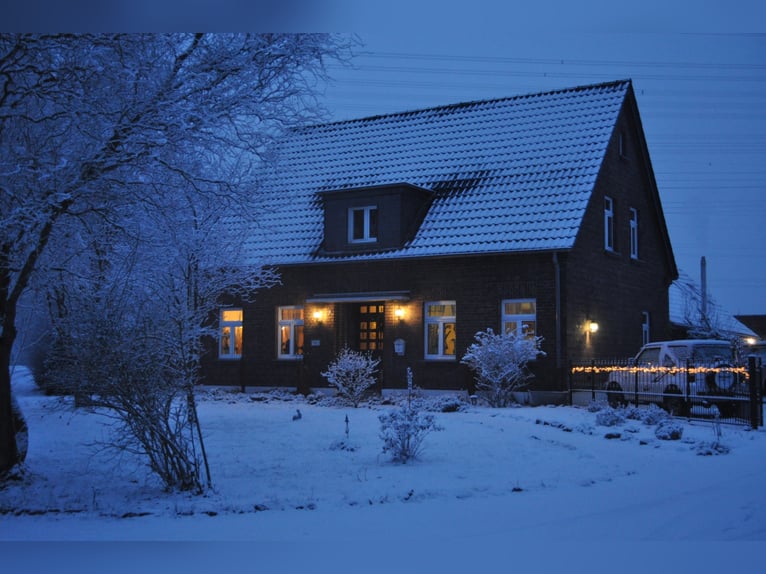 Nuestra yeguada ofrece a sus huéspedes unas vacaciones con detalles maravillosos. Nuestras habitaciones son turísticas y muy sencillas. Pero cada habitación tiene su toque especial. En nuestra yeguada, los huéspedes comparten el baño de invitados, porque nuestra yeguada no es un hotel. Aquí se duerme en camas como Dios manda. Los encantadores caballos grises están aquí en los prados directamente en el Issel y evocan un poco la Camarga en el campo. Nuestros sementales y yeguas son encantadores. Nuestro entrenamiento de jinetes y sus caballos se caracteriza por una interacción amistosa con el caballo como compañero. Queremos que los jinetes sean disciplinados, que los caballos disfruten de su trabajo y que los caballos estén contentos con lo que hacemos. Por el precio semanal de 580 euros para los jóvenes y 880 euros para los adultos, los huéspedes de la casa reciben dos clases al día, duermen bien y disponen de buena comida casera. En verano, el jardín invita a holgazanear y la piscina a nadar y relajarse. La pequeña biblioteca de la yeguada está provista de buena literatura sobre equitación y caballos, así como de novelas. Un picadero de 25 x 55 metros, así como un pequeño picadero cubierto muy especial, permiten un entrenamiento adecuado de forma permanente. En verano utilizamos un picadero de hierba como zona de entrenamiento. El parque natural Hohe Mark, con sus maravillosos senderos de equitación a través de bosques y brezales, comienza directamente en la granja tras una breve fase de calentamiento. Los huéspedes interesados y en buena forma física también pueden utilizar la pista de concurso completo de Obrighoven por un suplemento de 15 euros. Sólo hay que avisar al club con antelación (la pista está cerrada de noviembre a finales de febrero). La disponibilidad de habitaciones es limitada, actualmente una habitación grande con cama doble y una pequeña sala de estar, una habitación doble o una pequeña habitación individual. Las habitaciones de huéspedes no tienen cuarto de baño propio, los huéspedes deben utilizar el cuarto de baño de huéspedes con ducha. Corona medidas de higiene. En verano, también se puede dormir muy cómodamente en la casa de la piscina, o alternativamente en la casa de la lavanda, justo al lado del picadero. También hay un aseo justo al lado del picadero, donde también se han tomado todas las medidas de higiene para proteger contra las infecciones. En el aseo seco se pueden desinfectar las manos. Nuestro equipo espera su reserva Semana para jóvenes 580,00 Euro Semana de formación para adultos a petición